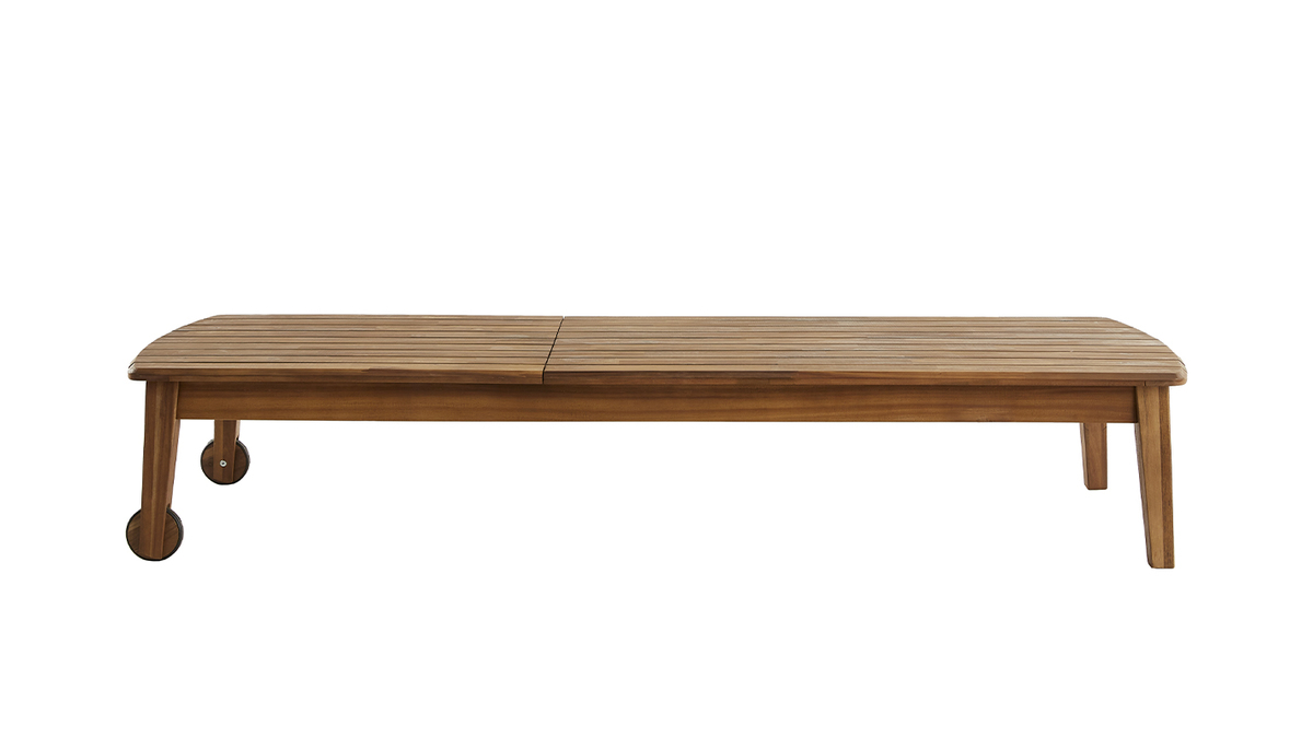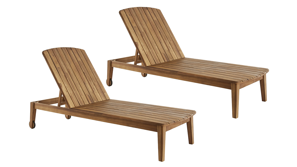 Ces grands classiques indémodables, au look 100 % zénitude, conjuguent avec simplicité volumes épurés et lignes élégantes en acacia massif. Robuste, cette essence exotique reconnaissable par ses nuances ambrées apportera une touche authentique et du caractère à vos jardins ou terrasses.