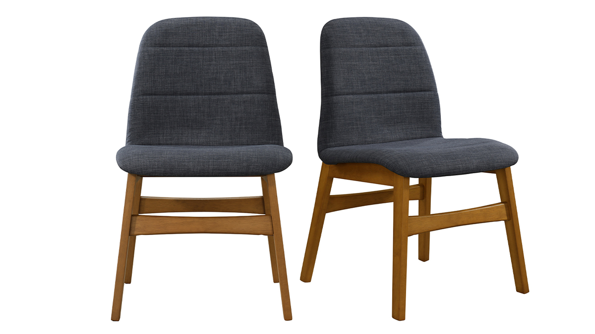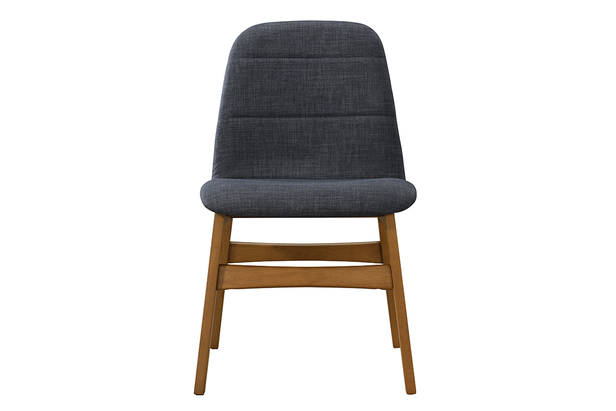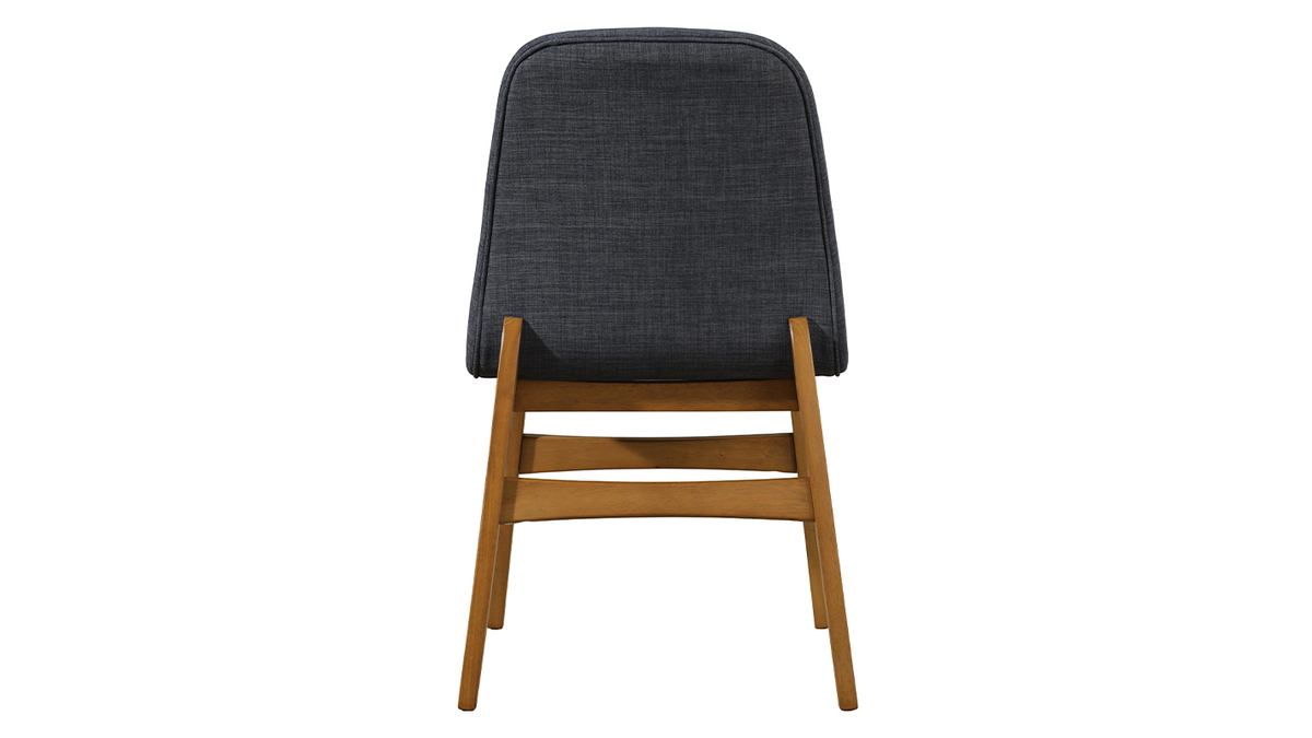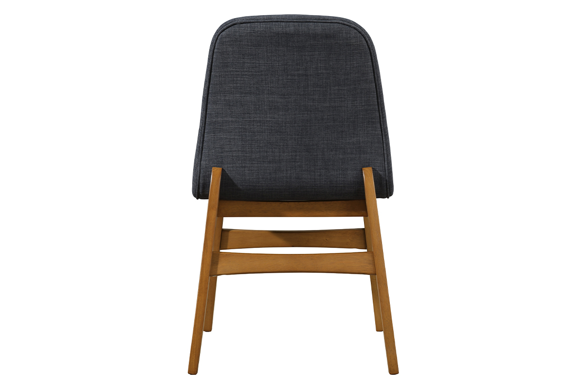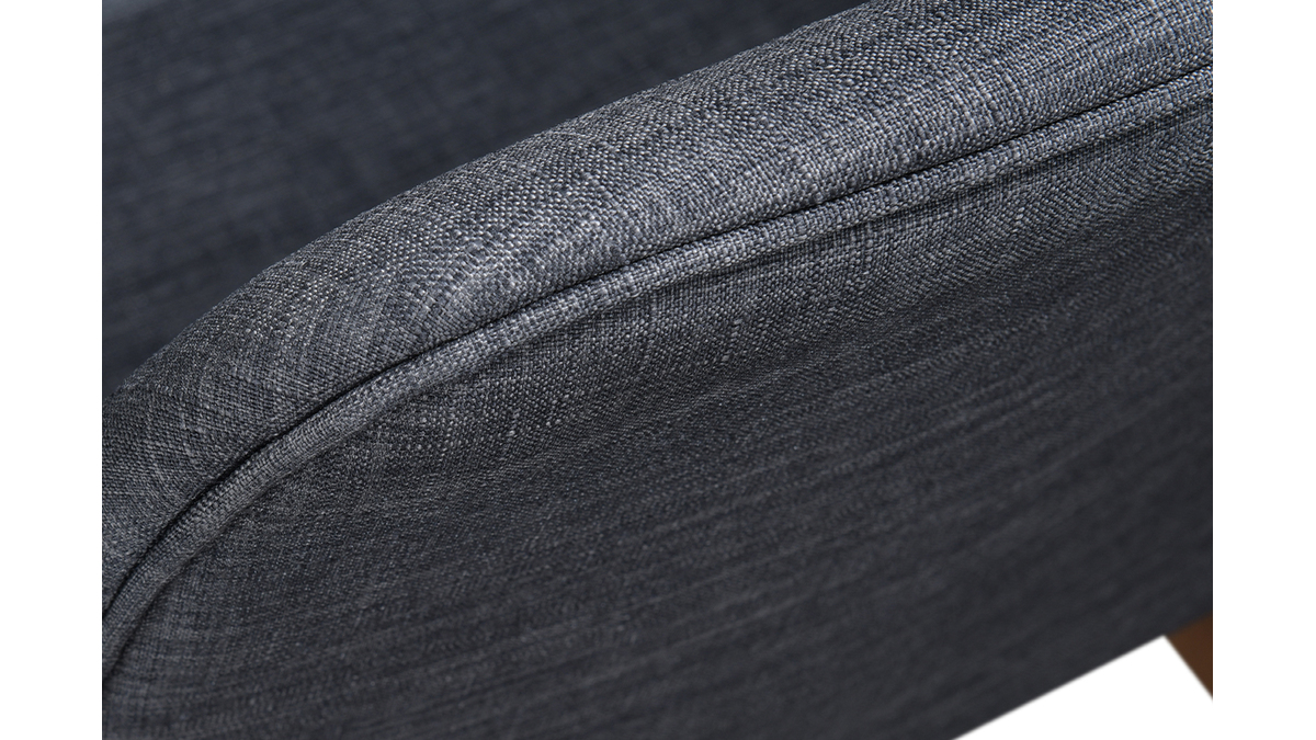 Ces chaises grises et bois foncé séduisent par l'accord parfait des deux matières : dossier et l'assise se pârent d'un tissu au toucher agréable et réconfortant, un piètement en bois frêne massif teinté noyer.