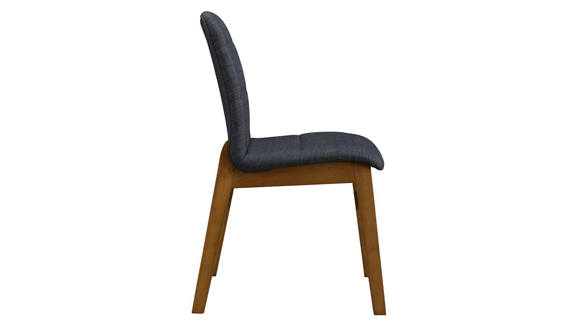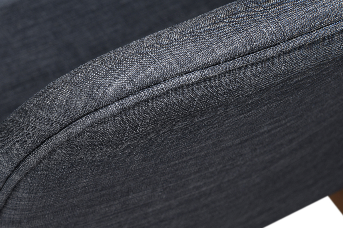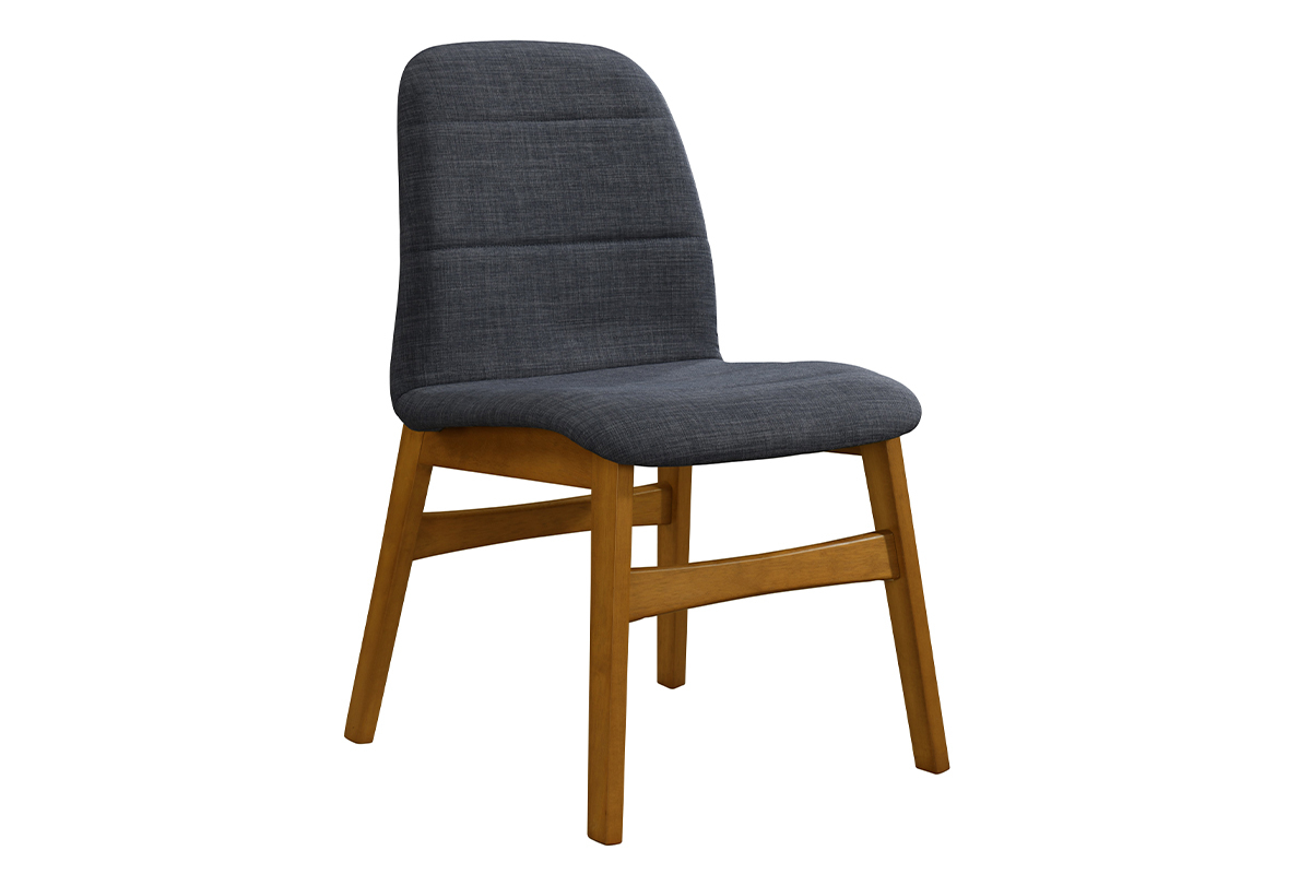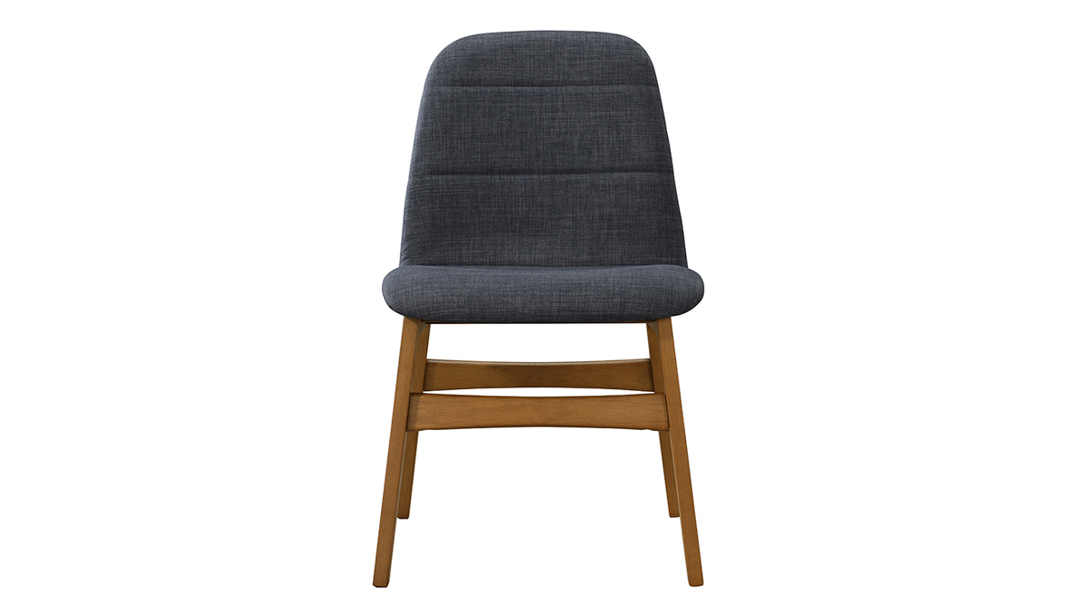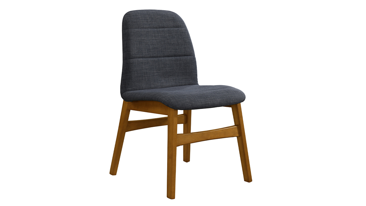 Ces chaises grises et bois foncé séduisent par l'accord parfait des deux matières : dossier et l'assise se pârent d'un tissu au toucher agréable et réconfortant, un piètement en bois frêne massif teinté noyer.