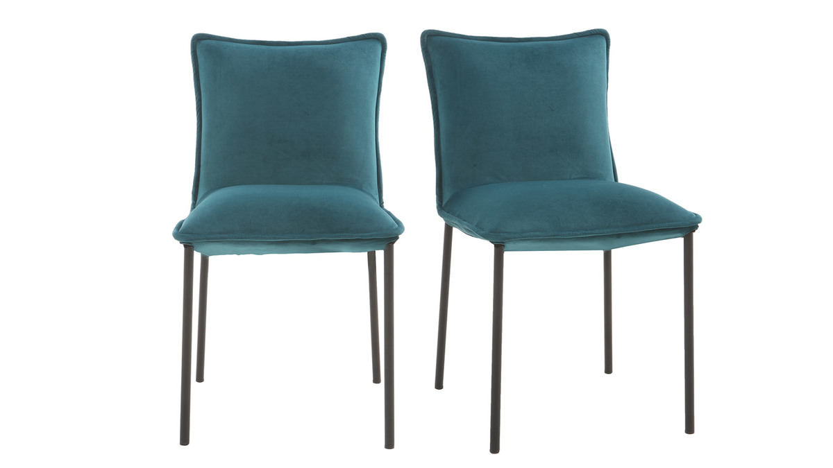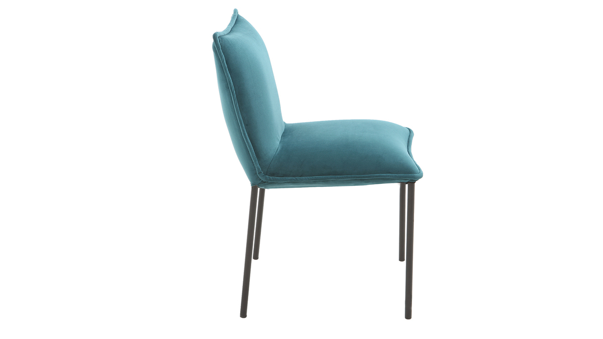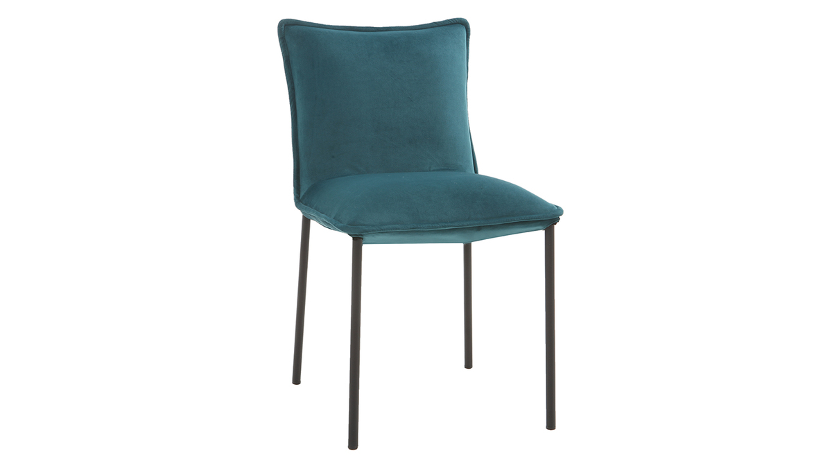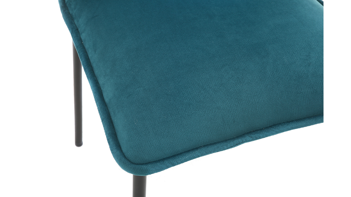Sa jolie couleur bleu pétrole apporte un charme et un chic fou, mais contraste également avec les pieds en métal. Un style contemporain, raffiné et élégant qui ravira votre pièce à vivre. Vous pourrez facilement les mixer avec les chaises SOLACE grises.