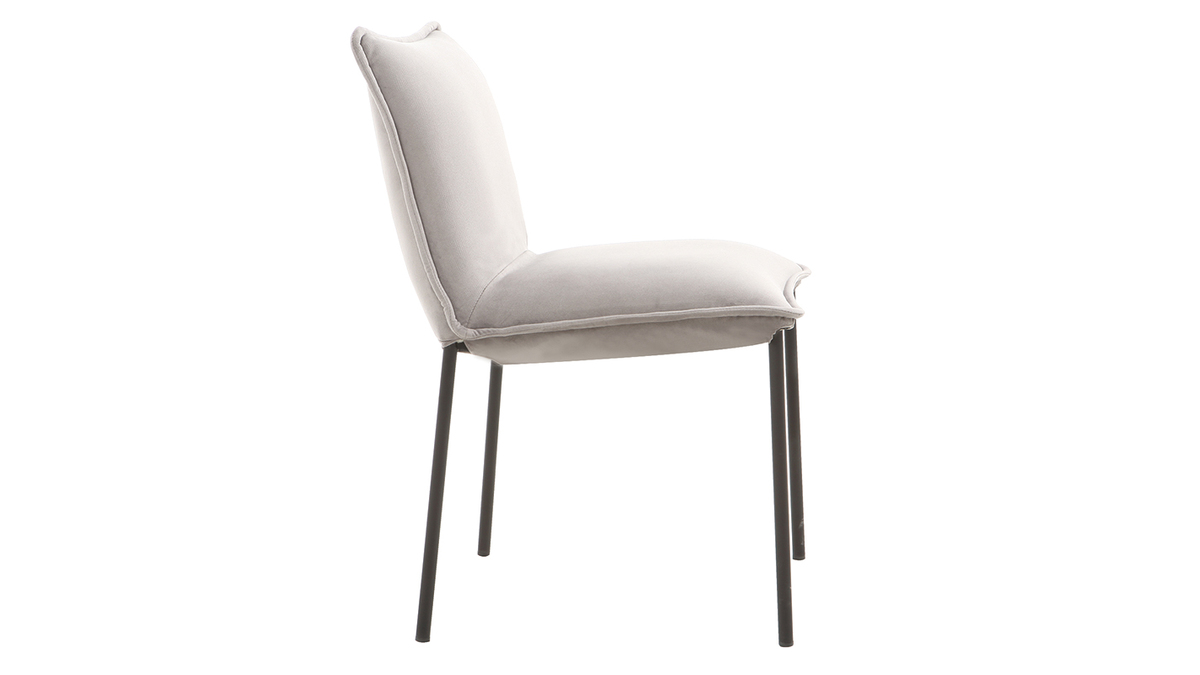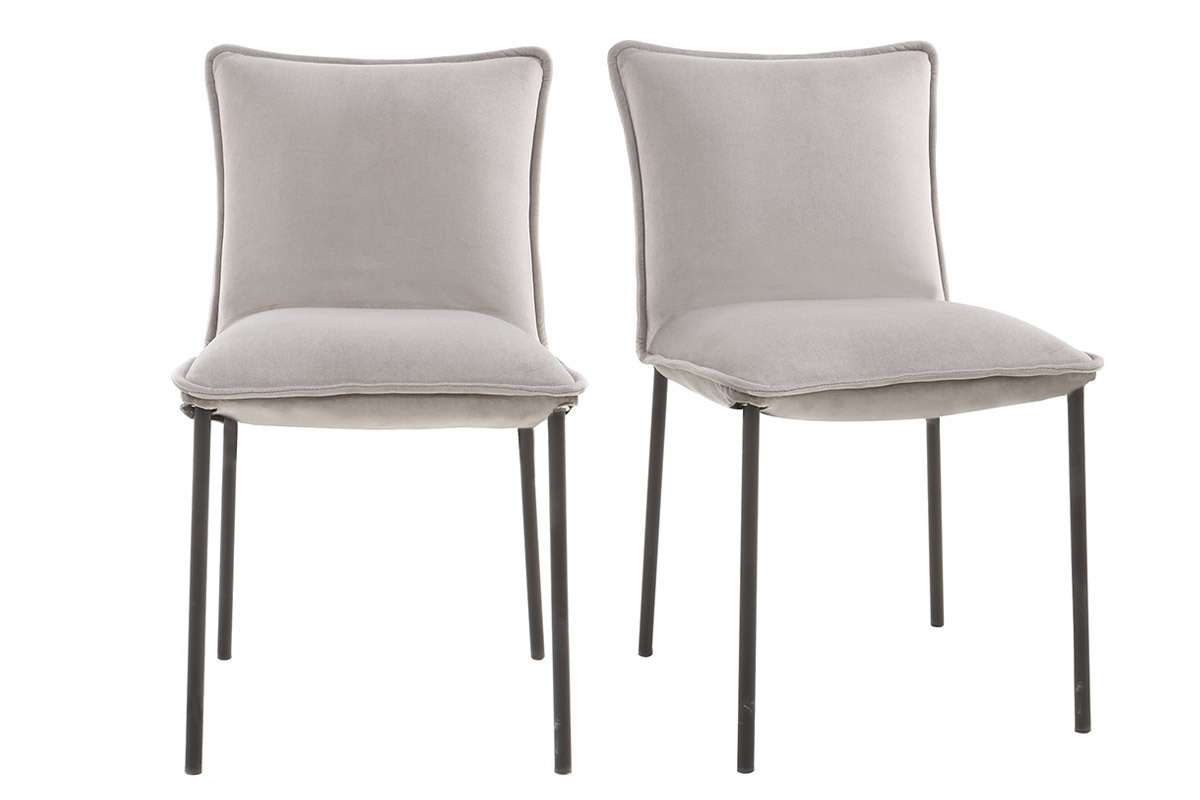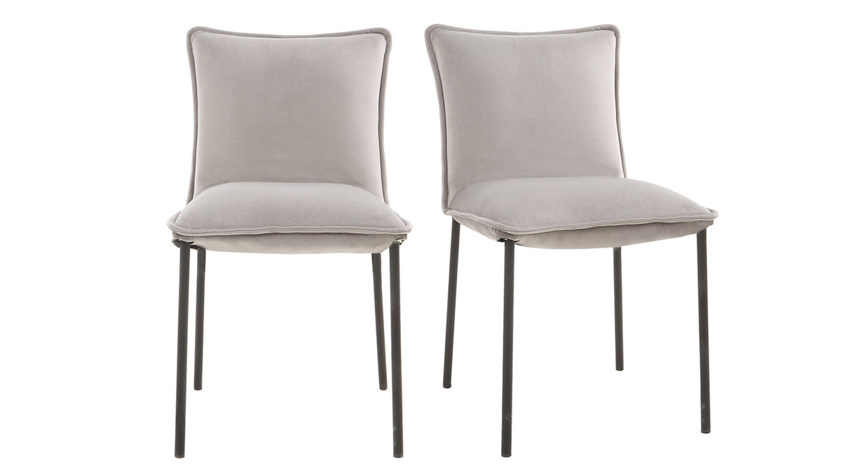 Ces chaises de cuisine et salle à manger s'habillent d'un élégant gris clair qui contraste avec le piètement en métal noir. Au style contemporain, raffiné et élégant, ces jolies chaises raviront votre pièce à vivre.