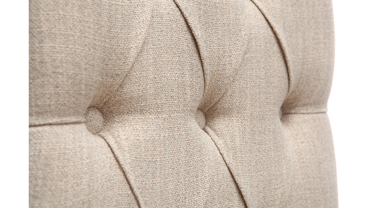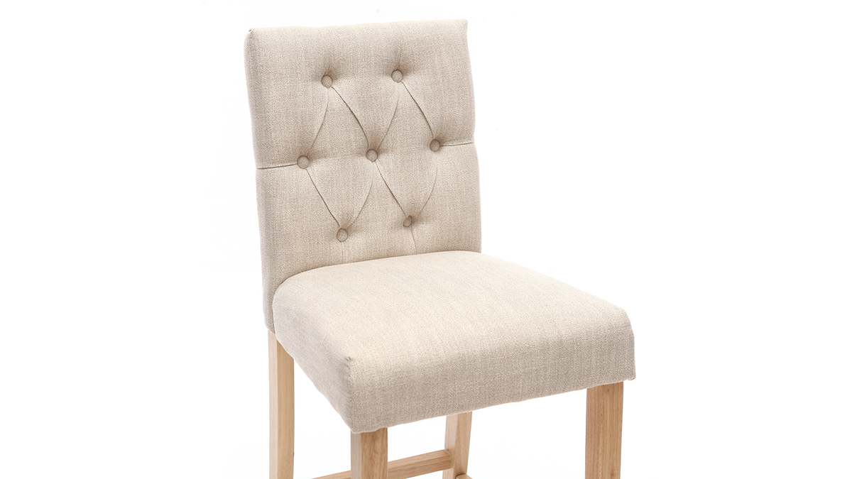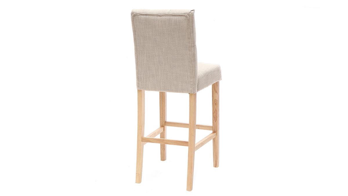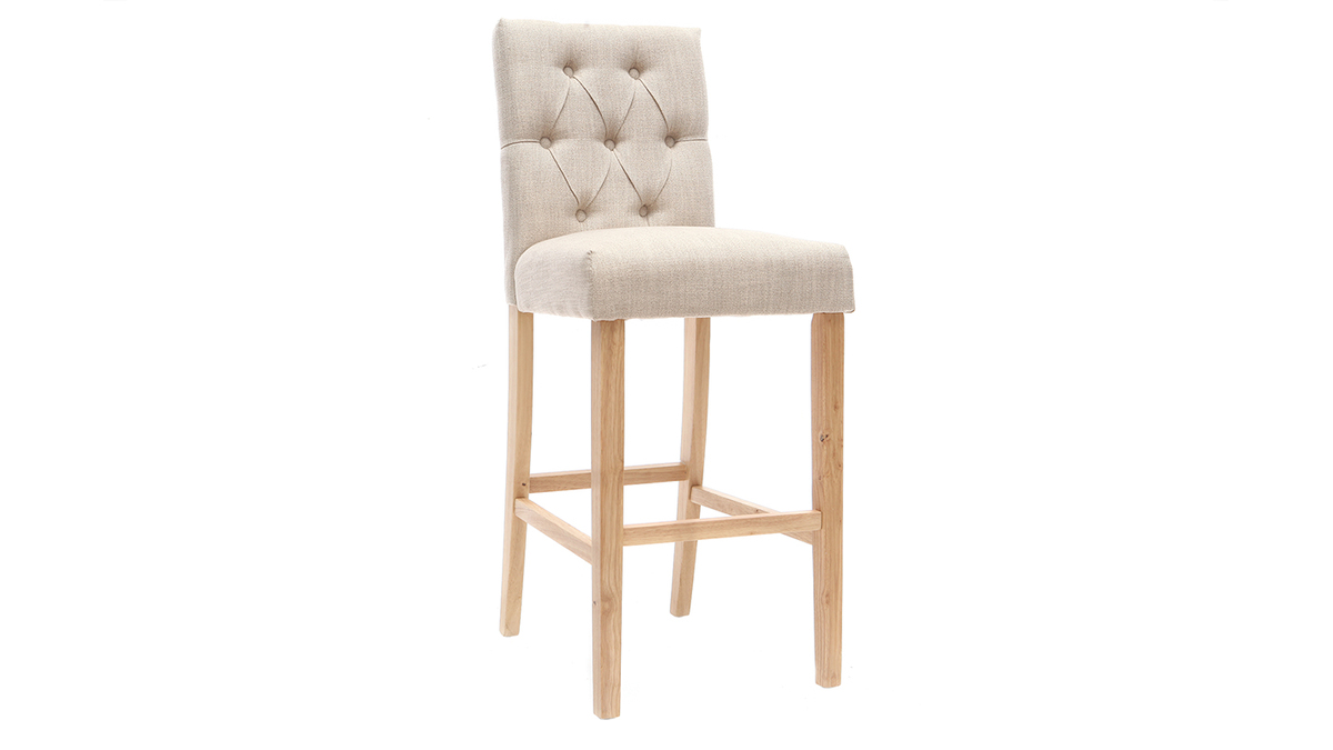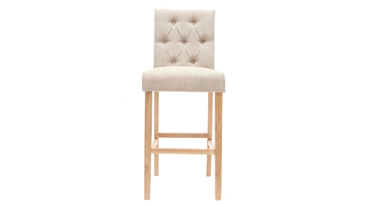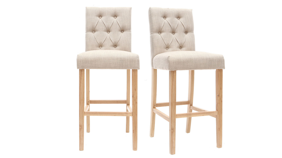 Vendus par lot de 2, ces tabourets de bar RIVOLI apportent du raffinement à votre intérieur. Leur dossier capitonné donne une touche classique chic et décalée à une décoration industrielle ou moderne. Le revêtement en tissu polyester beige naturel s'intégrera facilement avec vos meubles car c'est une couleur sobre et naturelle.