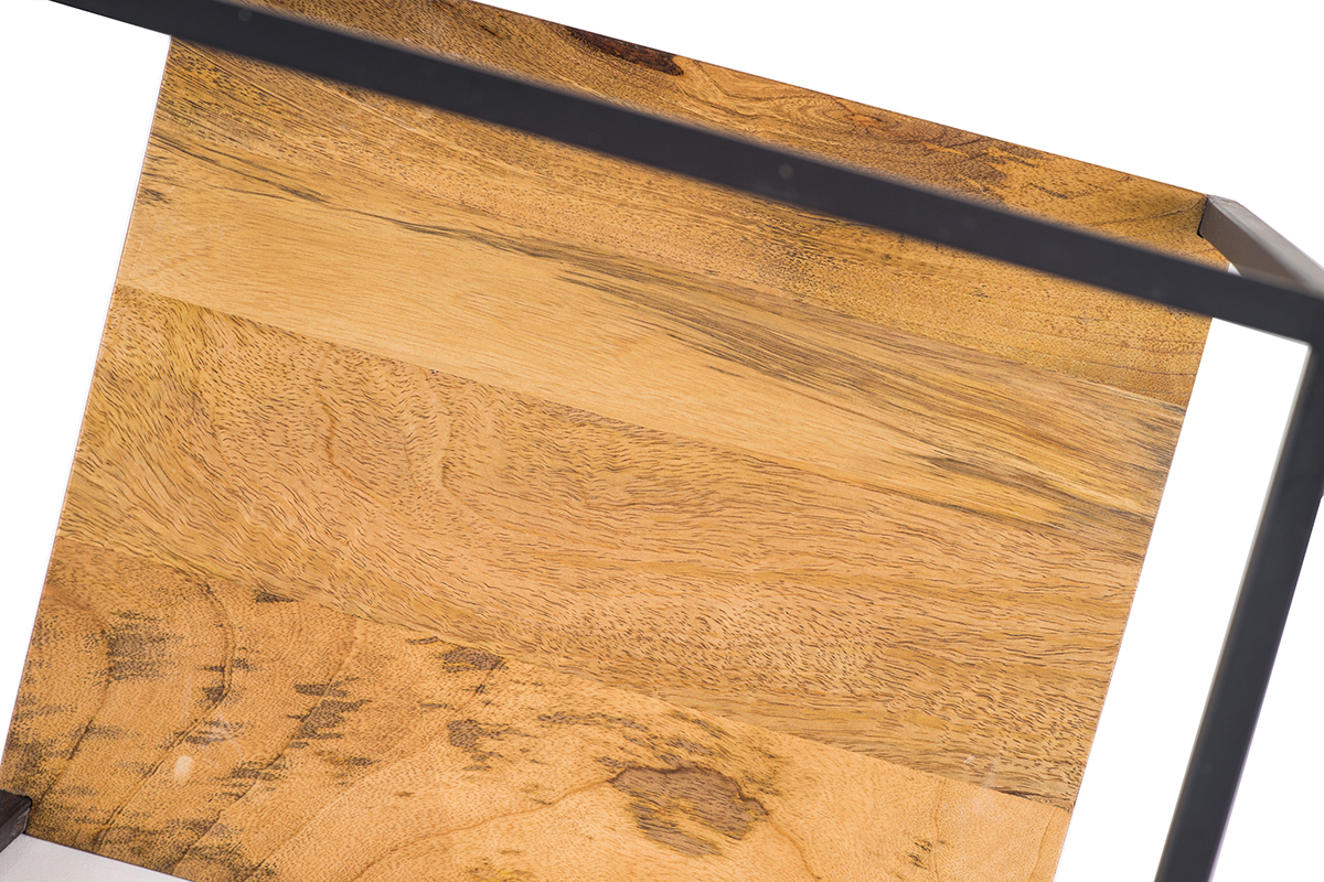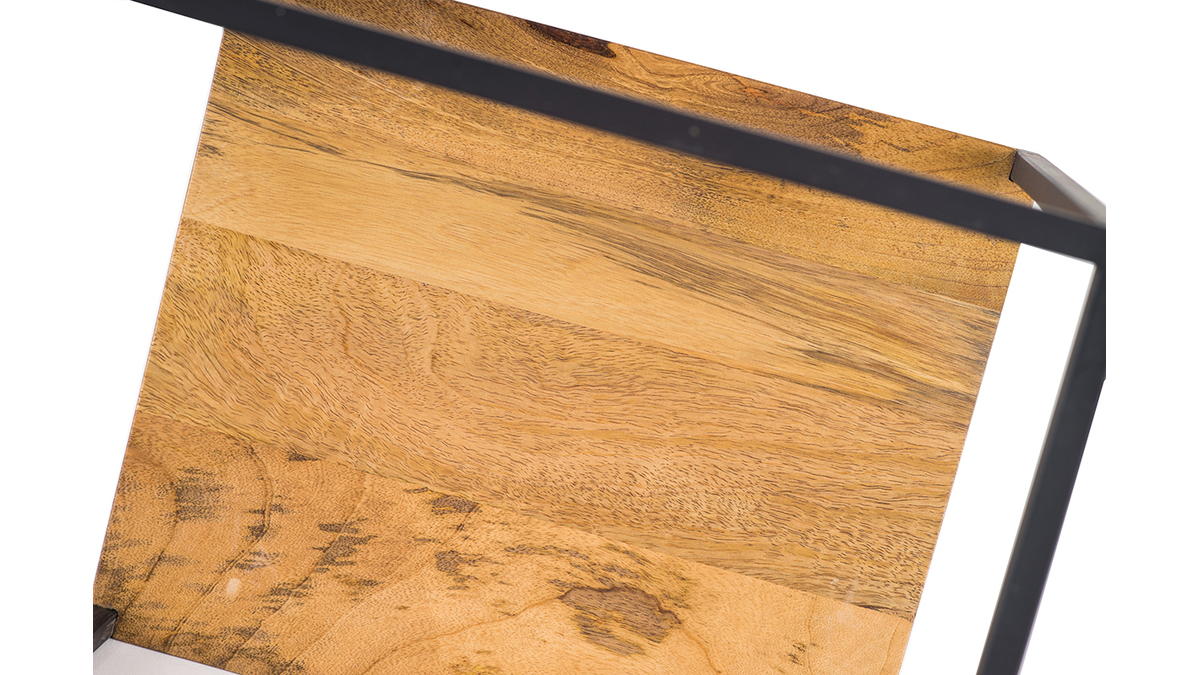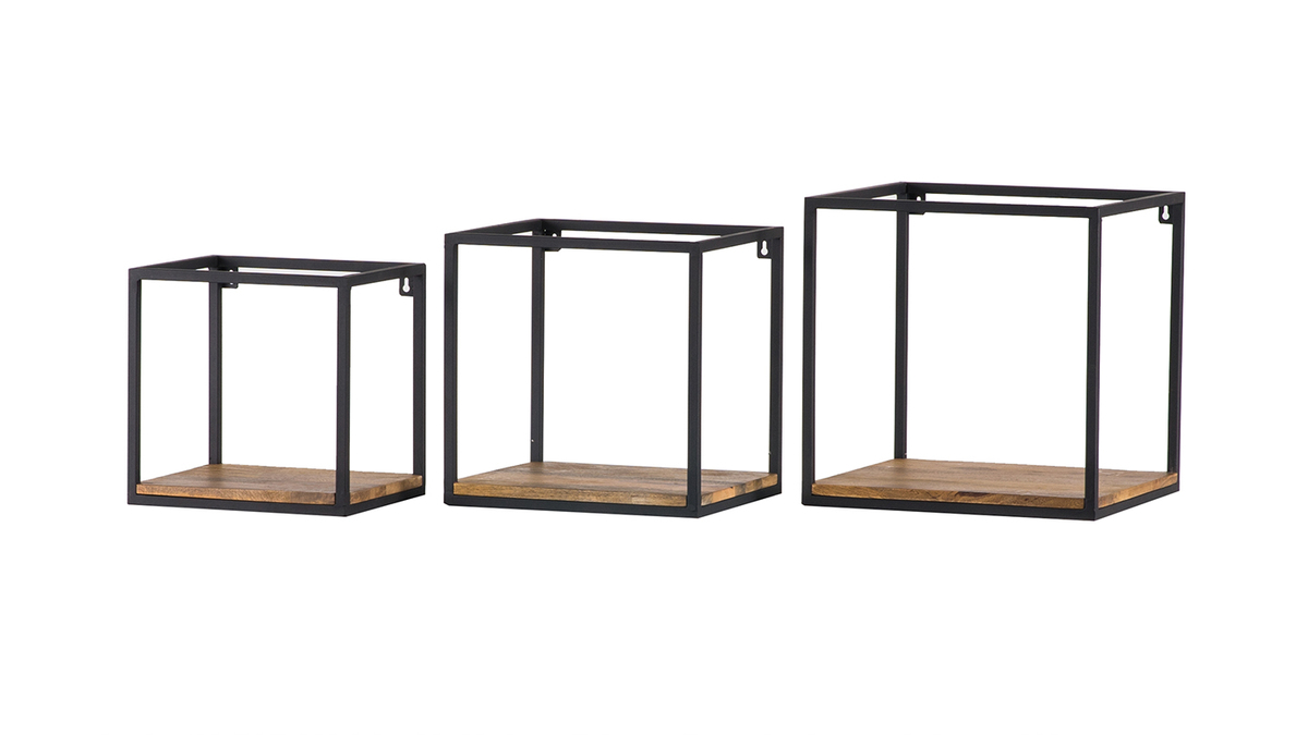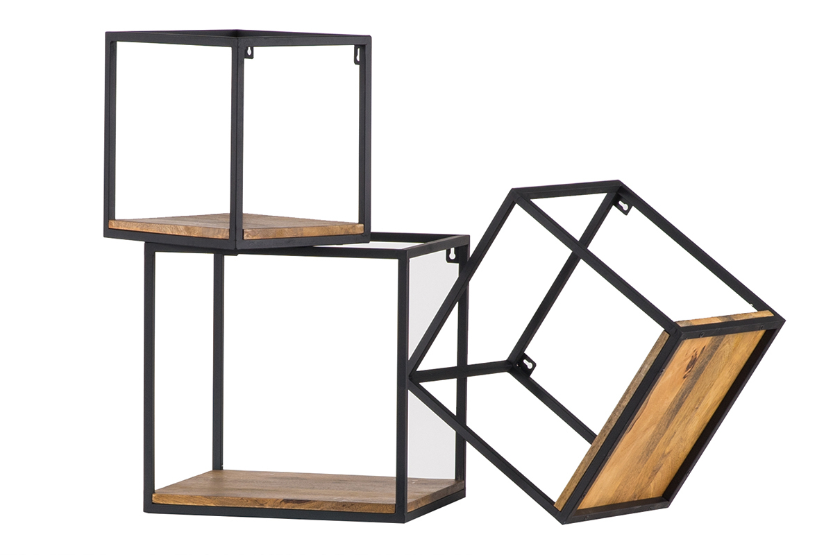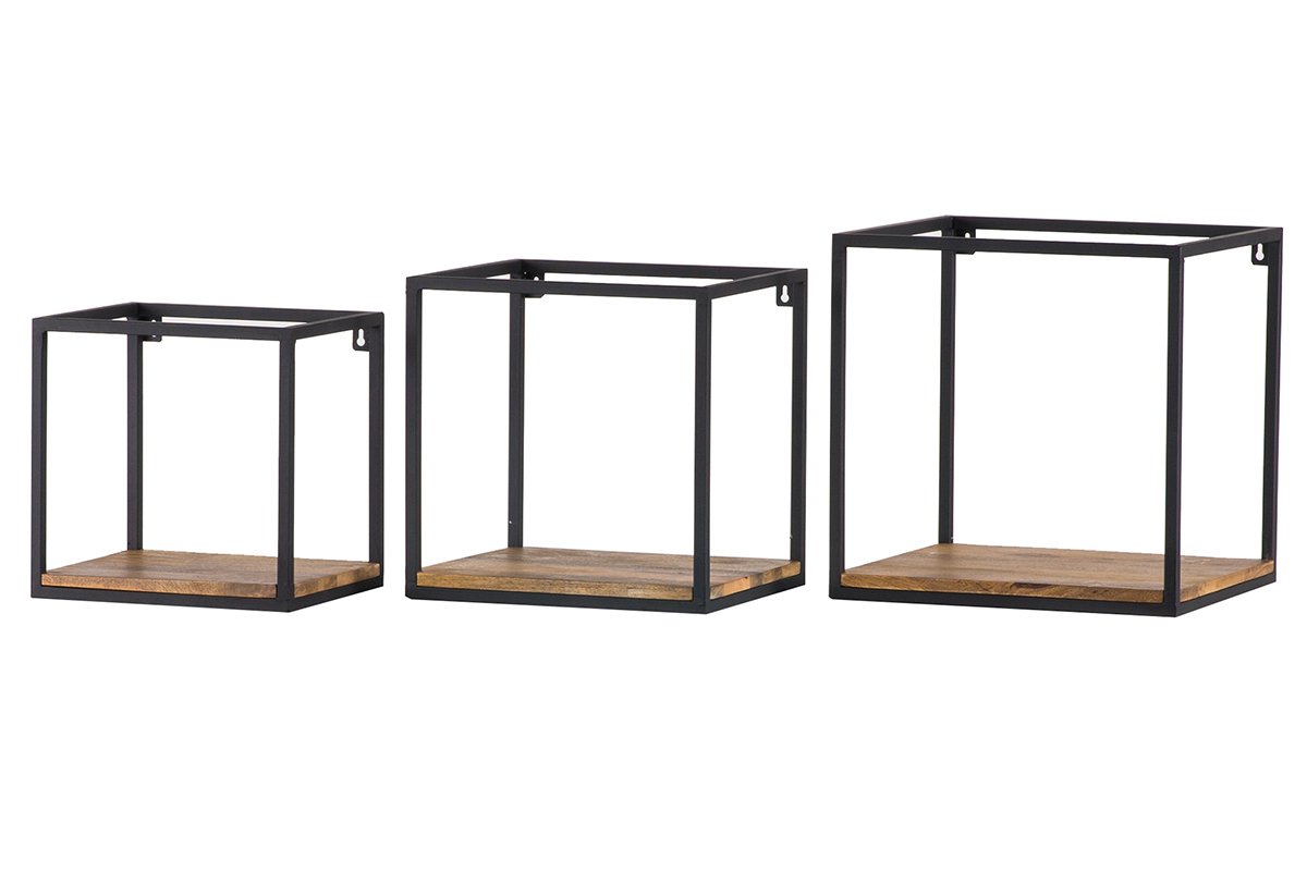 Ces 3 petites étagères carrées (dimensions étagère 1 : L26 x L22 x H26 cm - dimensions étagère 2 : L30 x L26 x H30 cm - dimensions étagère 3 : L34 x L30 x H34 cm) possèdent des lignes droites et fines qui leur donnent de l'élégance et beaucoup de caractère. Composées de métal noir et de bois clair manguier massif, ces étagères inspirées de la tendance déco industrielle apporteront une petite touche d'authenticité à votre intérieur.