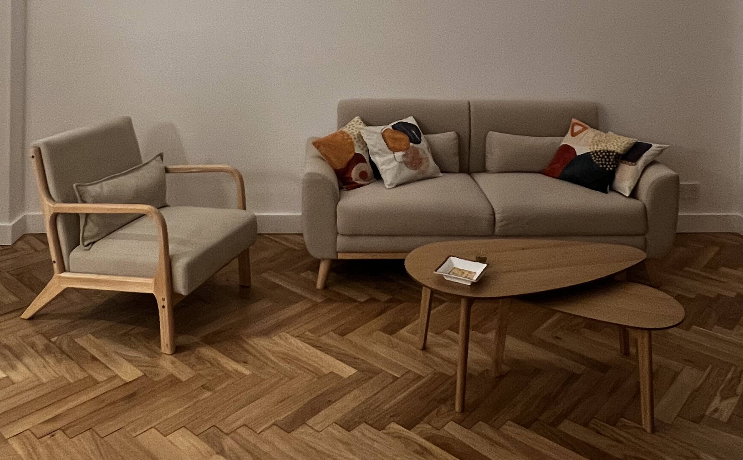 Les tables basses ARTIK allient un joli plateau ovale plaqué chêne à un piètement tripode en chêne massif. On aime particulièrement la douceur de leurs lignes et leur design qui traverse les époques et les styles.