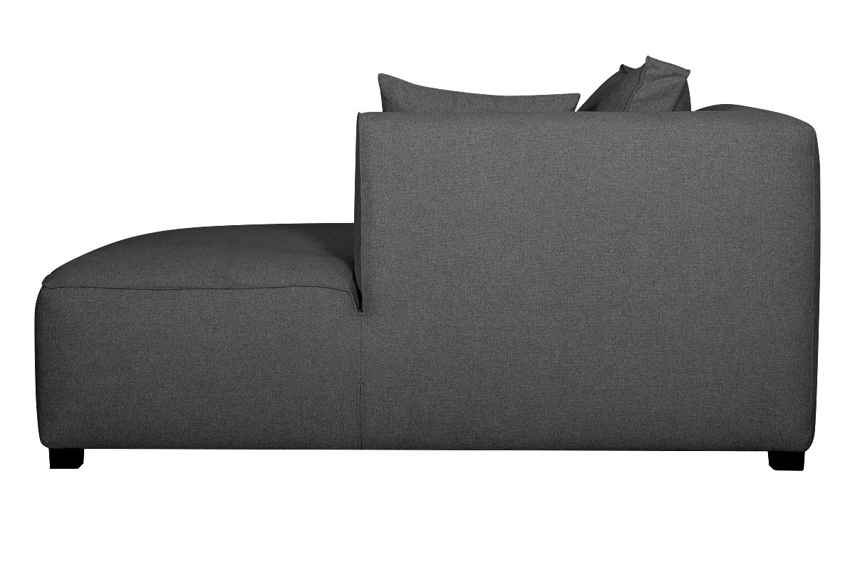 Seule ou accompagnée d'autres modules, la méridienne angle droit invite à la détente et à la convivialité. Son assise épaisse et profonde associée à des petits coussins de dossier d'appoint en fait un siège confortable. Grâce à ses dimensions L106 x L168 x H75 cm, combinée avec un module d'angle, elle formera un joli canapé d'angle droit chic et moderne. Un revêtement en tissu gris anthracite (100% polyester), une ligne droite et épurée : cette méridienne design rappelle tout ce qui fait l'élégance des sièges contemporains. Elle possède tous les atouts pour s'adapter à vos envies déco.