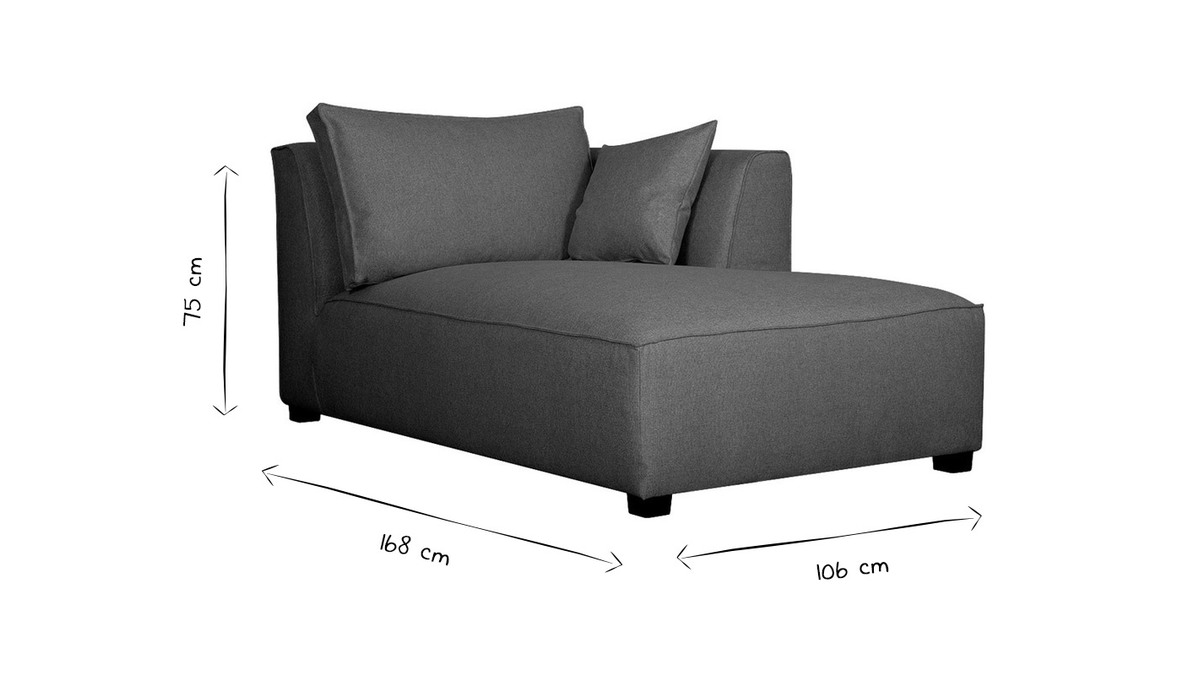 Prolongation de votre canapé ou assise supplémentaire dans votre salon, selon le nombre de m² disponibles avec son look dans l'air du temps et son revêtement en tissu gris anthracite, cette grande méridienne angle gauche aux dimensions L106 x L168 x H75 cm trouvera facilement sa place dans des ambiances déco scandinave ou contemporaine.