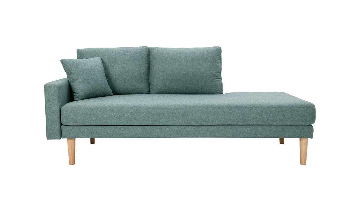 Si cette élégante banquette vert de gris trônera fièrement au centre du salon près d'un canapé coordonné, on l'imagine également dans un bureau ou une chambre d'amis. Voilà une méridienne scandinave qui remplacera avec style un lit simple d'appoint.