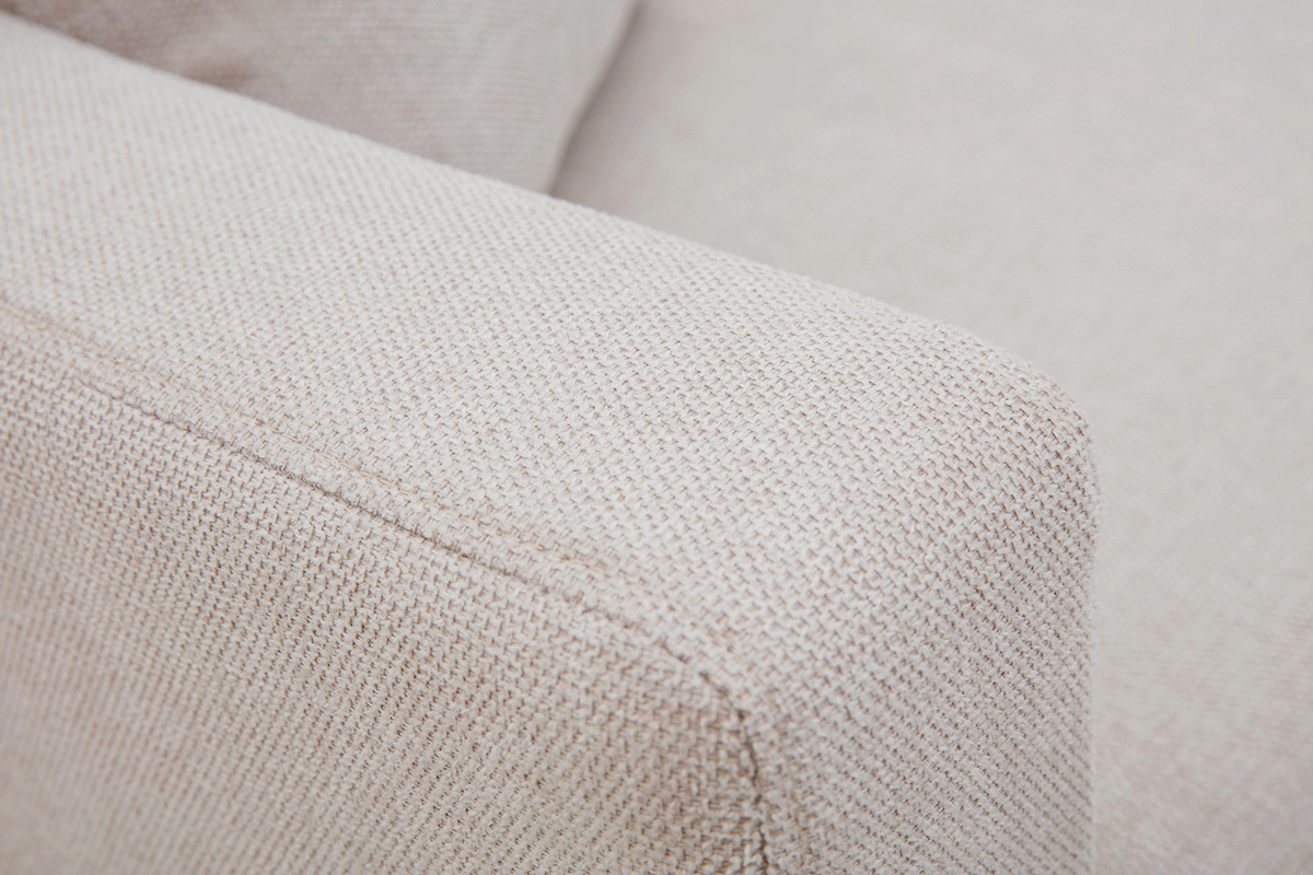 Avec son assise rembourrée (épaisseur 18 cm) et son revêtement souple et doux au toucher, cette méridienne en tissu effet velours texturé beige et bois massif est idéale pour créer un espace dédié à la détente. Ce modèle de méridienne design combine des ressorts et trois épaisseurs de mousse pour toujours plus de confort (densités 28 kg/m3, 18 kg/m3 et 22 kg/m3). Grâce à leur garnissage en fibres polyester, les deux grands coussins de dossier - assortis au coussin d'appoint (L35 x L35 x E16 cm) - proposent un accueil des plus moelleux.
