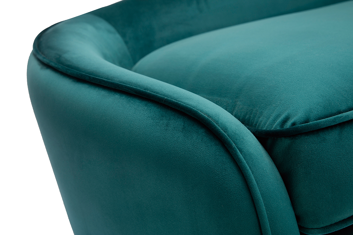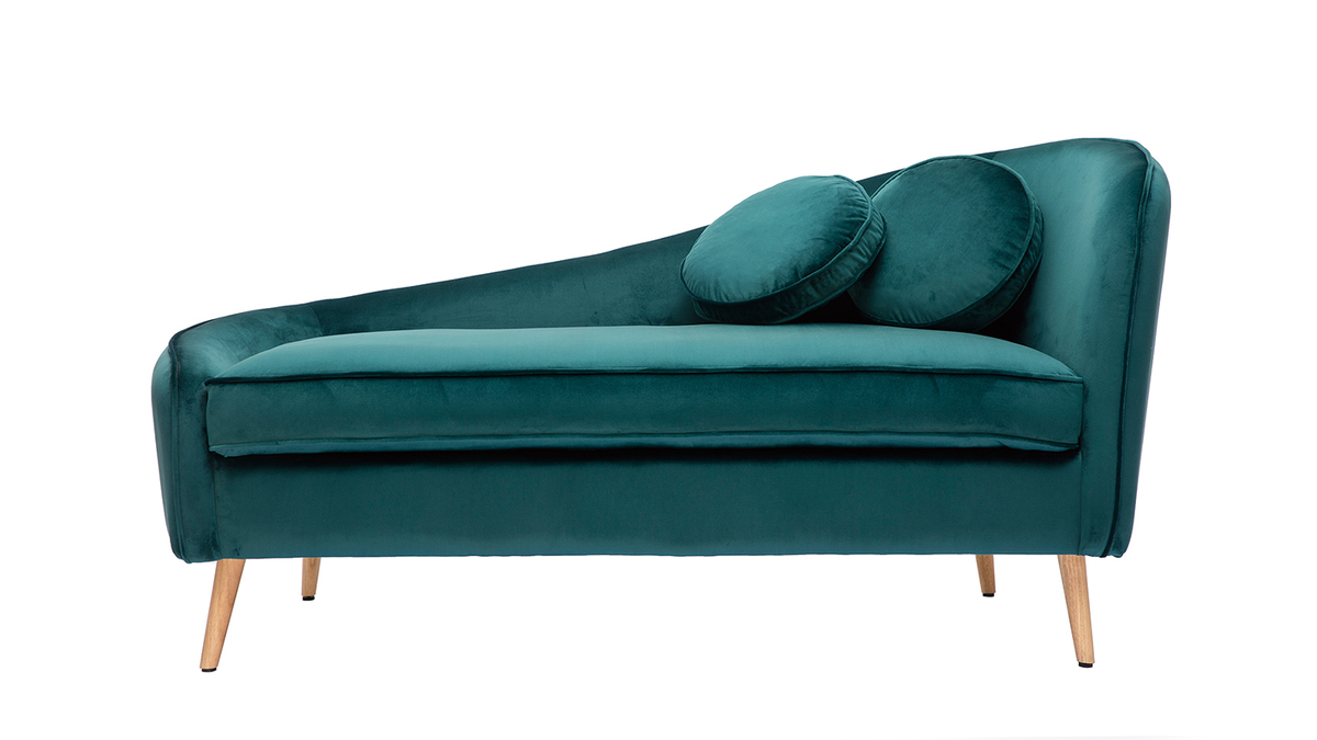Avec sa ligne sculpturale et son dossier asymétrique galbé, cette méridienne revisite l'esprit boudoir. Ses courbes libres et son piètement effilé en hévéa massif incarnent l'esprit glamour des fifties.