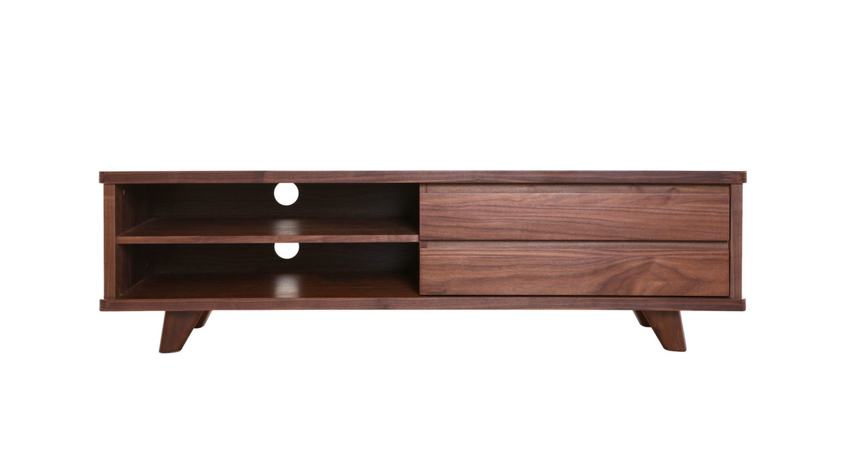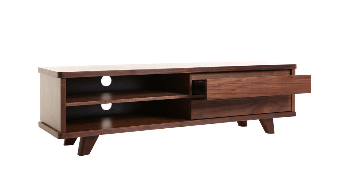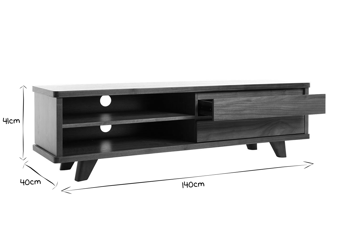 Derrière ses allures rétro, FIFTIES cache de nombreux rangements fonctionnels et parfaitement adaptés aux salons modernes. Deux niches ouvertes sont équipées de passe-câbles pour accueillir tous les appareils électroniques. Elles sont complétées par deux tiroirs pour ranger les affaires du quotidien. Le plateau de L140 x P40 cm mettra en valeur l'écran télé.