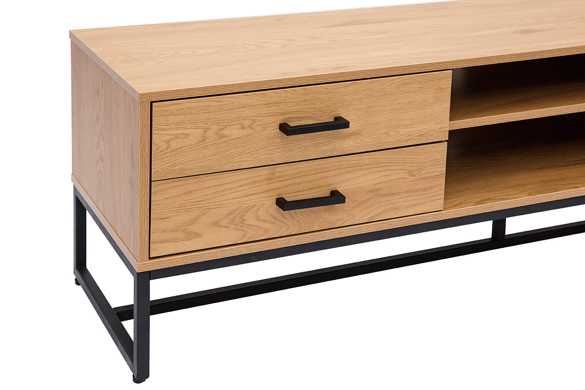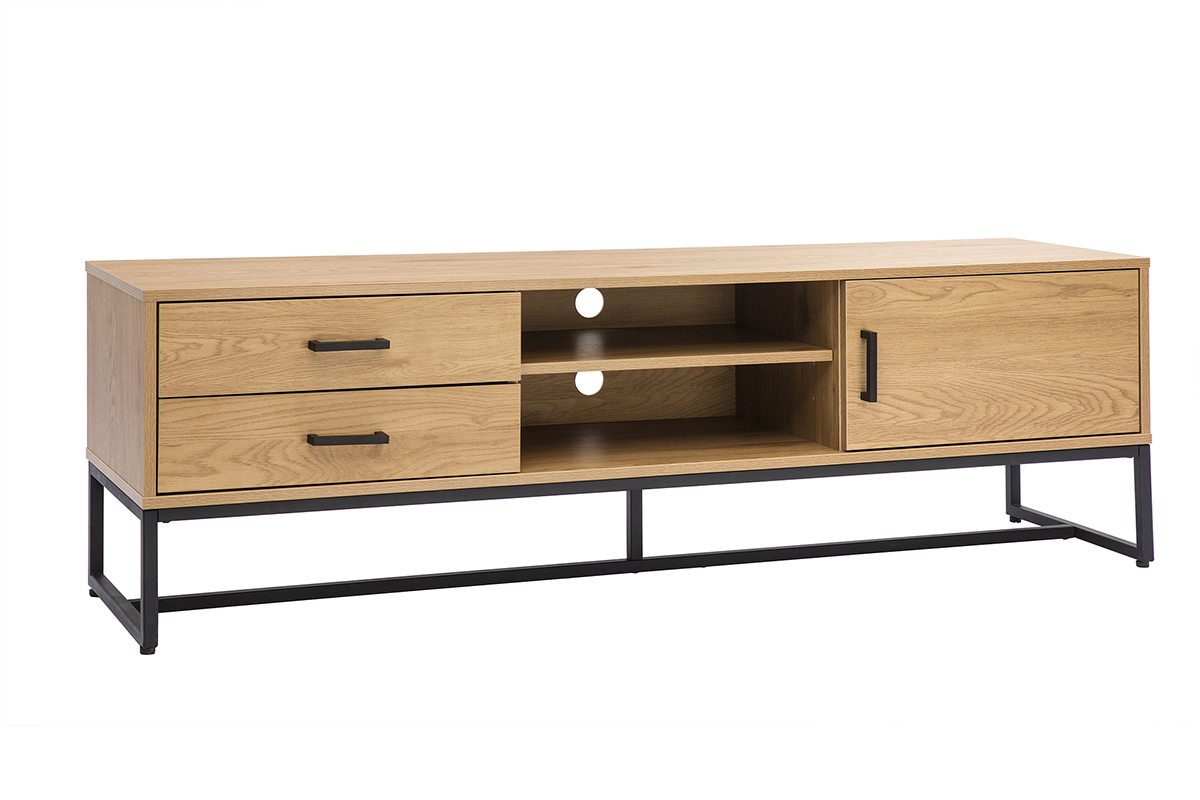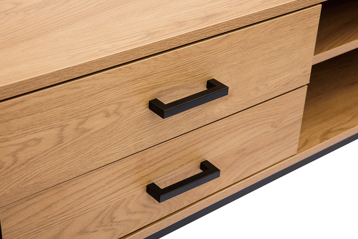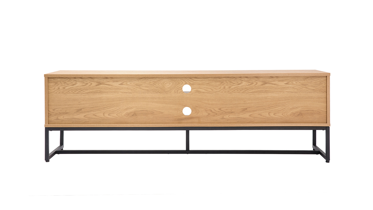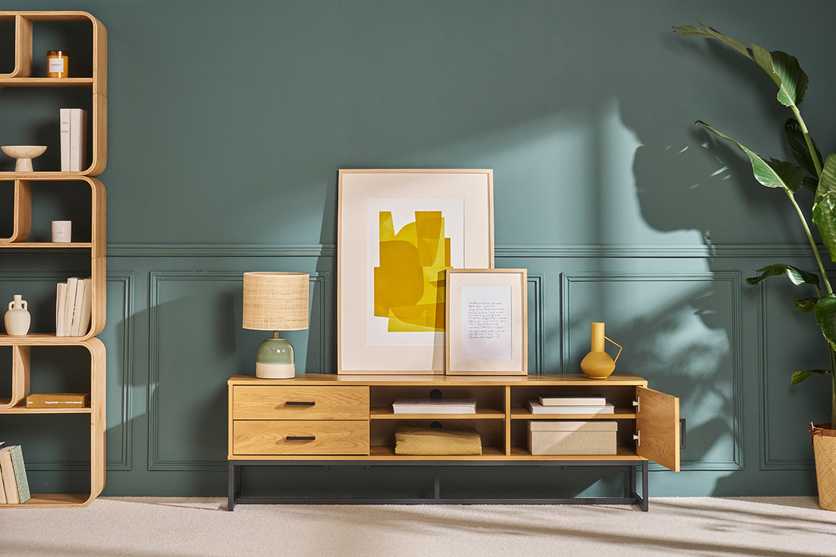 Peu profond mais résolument pratique, le meuble TV LOVATO (L160 x P43 x H50 cm) est doté de nombreux rangements. Les deux tiroirs permettent de dissimuler tous les accessoires high-tech et les petits objets du quotidien qui envahissent l'espace salon. Les deux grandes niches ouvertes accueilleront les box TV et consoles de jeux sans risque de surchauffe.