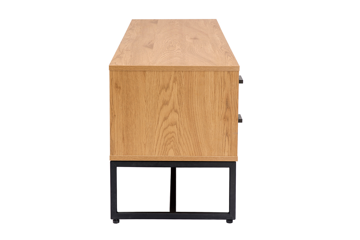 Perché sur une base en métal noir au design épuré, le meuble TV LOVATO est à la fois sobre et authentique. Sa finition chêne (mélamine) aux veines marquées et aux jolies nuances dorées réchauffe instantanément l'atmosphère tandis que sa structure métallique empreinte de légèreté apporte une touche de modernité.