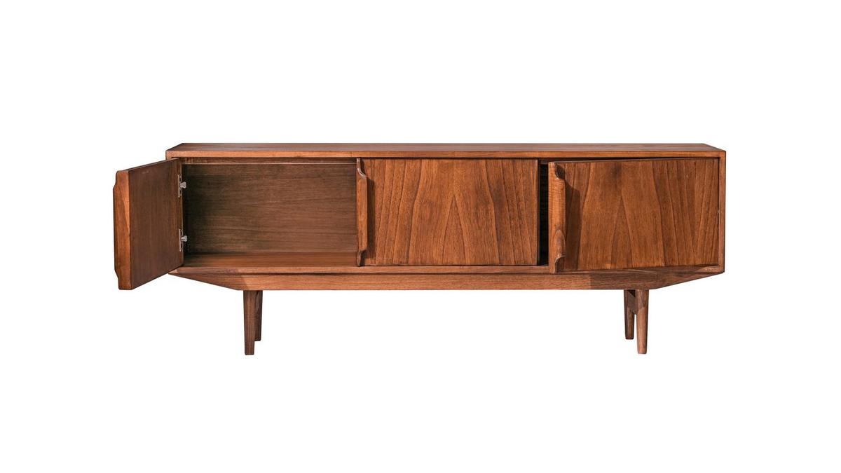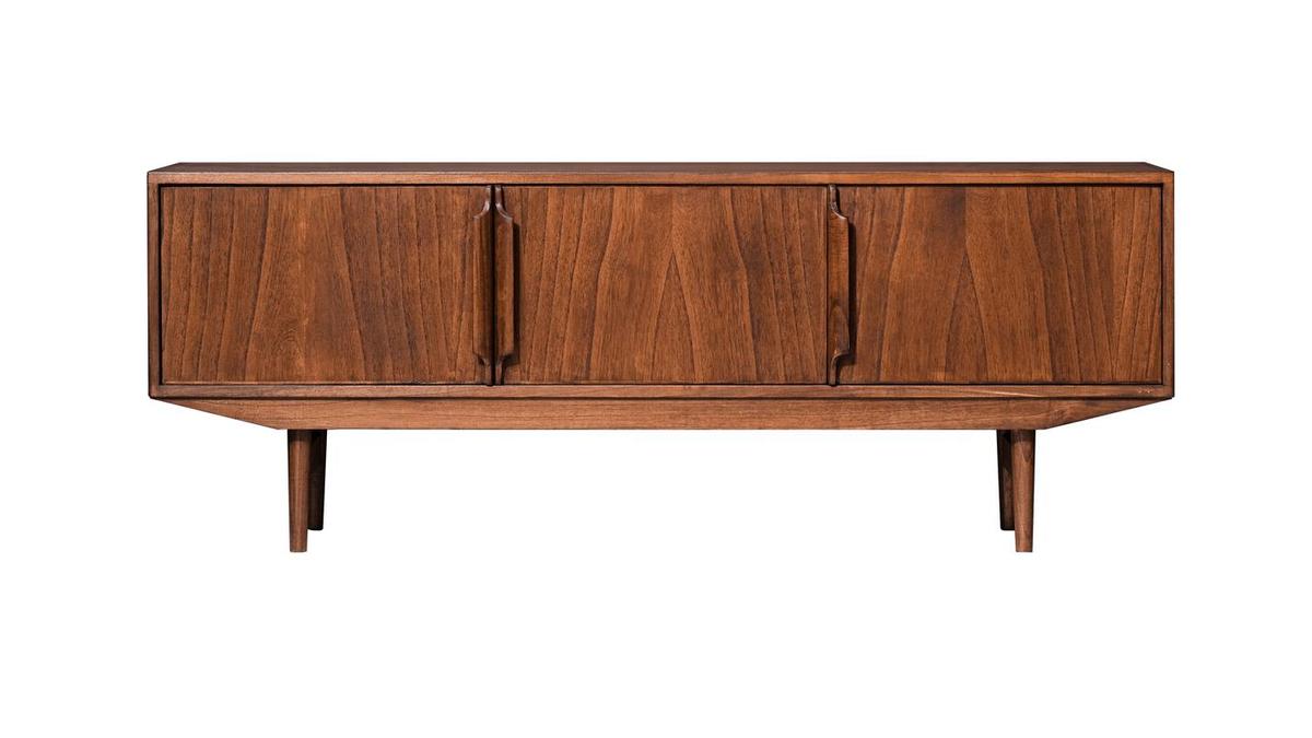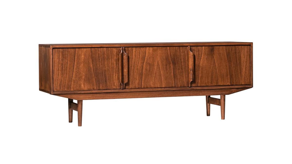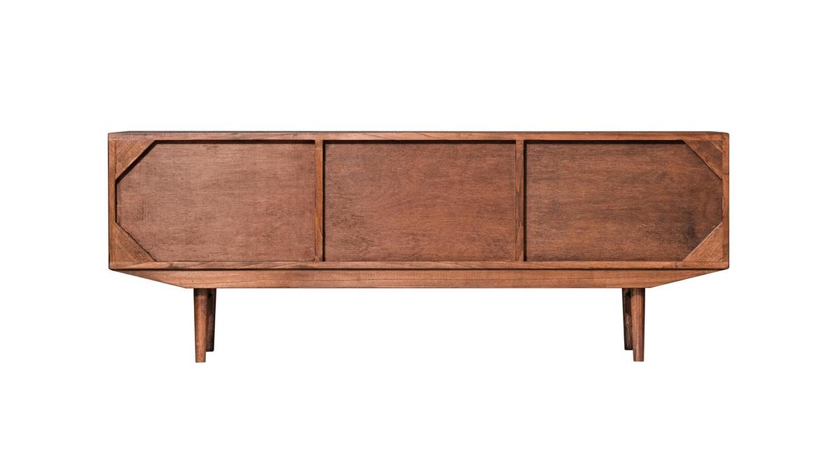 Derrière ses allures rétro, ce meuble TV trois portes renferme des rangements fonctionnels parfaitement adaptés aux salons modernes. Le plateau de 160 cm mettra en valeur l'écran télé et vous permettra d'exposer vos plus belles pièces de décoration.