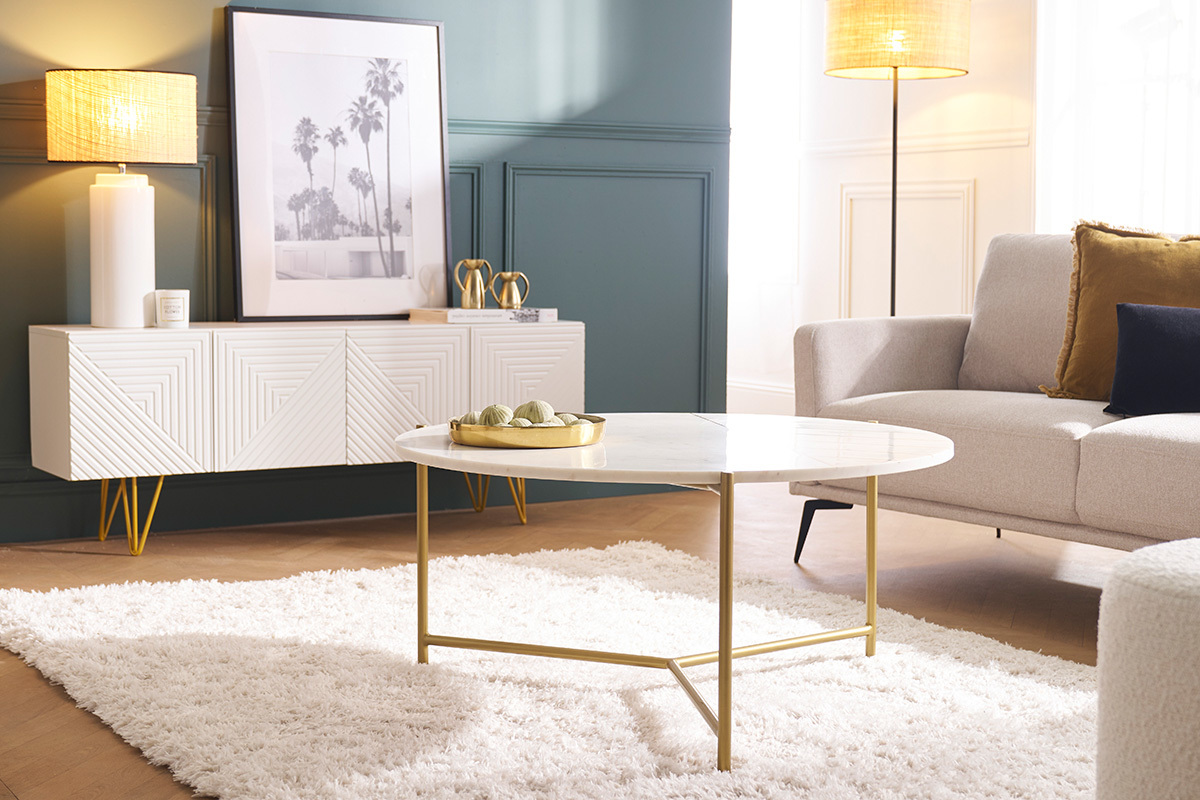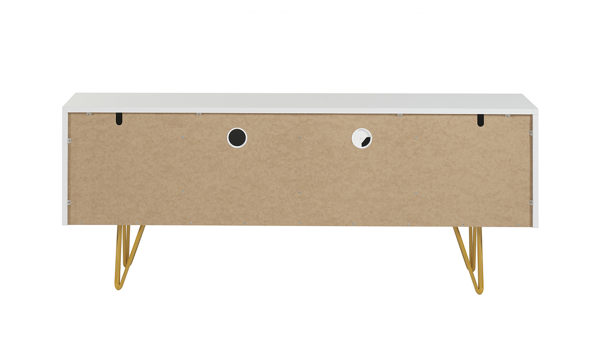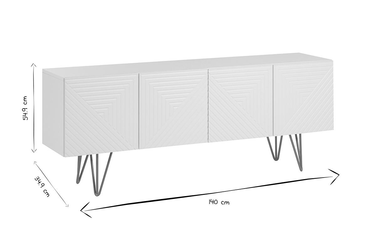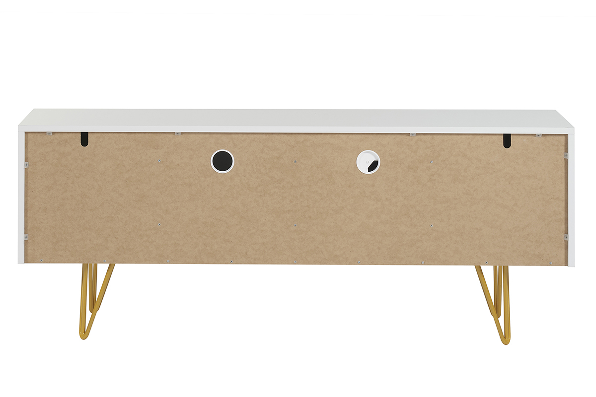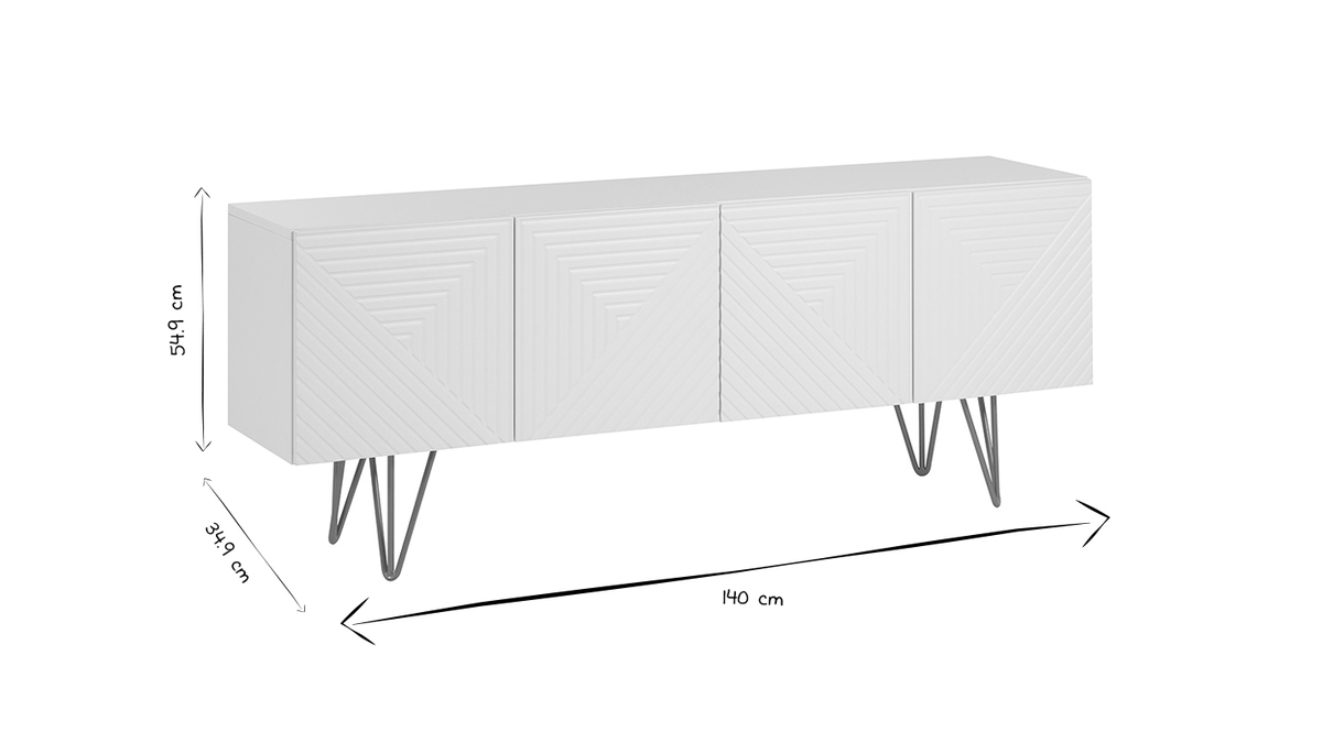 Le meuble TV OZEN est un véritable concentré d'élégance. Son caisson blanc immaculé s'habille de superbes gravures graphiques, hypnotiques. Il repose sur des pieds en épingle en métal doré, de quoi donner un côté ultra aérien et tendance à l'ensemble. Moderne et design, ce meuble TV blanc et doré apportera une belle touche d'éclat du salon ! Au sein d'un séjour contemporain, il formera la combinaison parfaite accompagné du buffet assorti.
