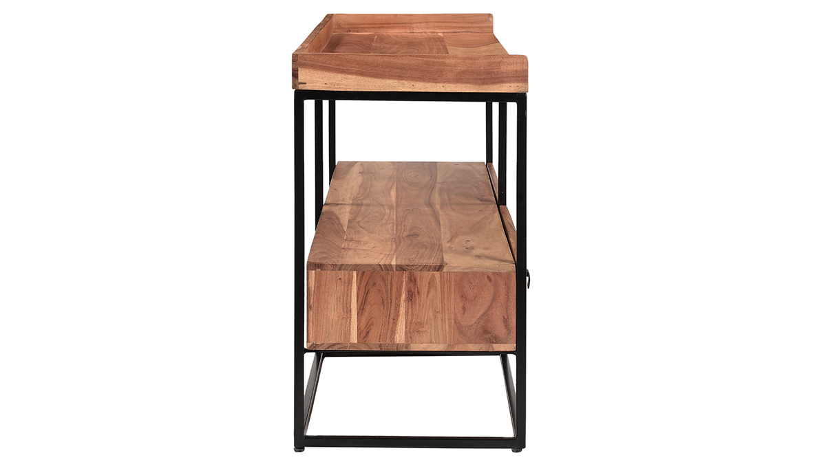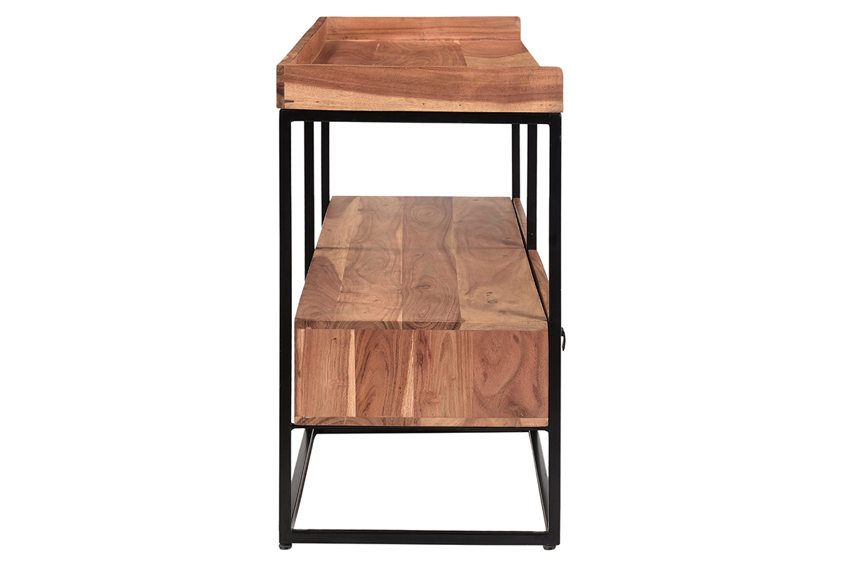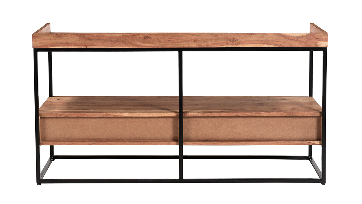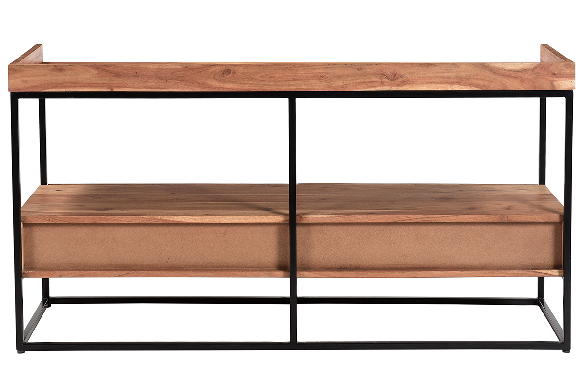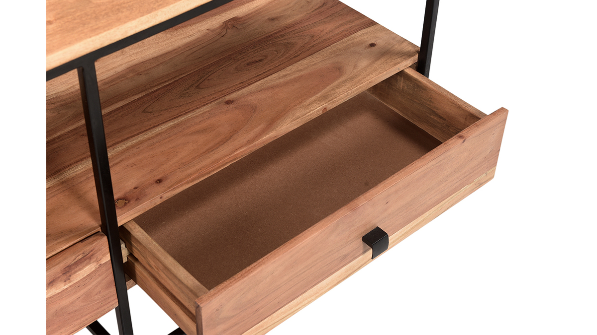 Pour un intérieur chaleureux, optez pour le meuble TV avec tiroirs en acacia massif et métal noir HERMANN.
