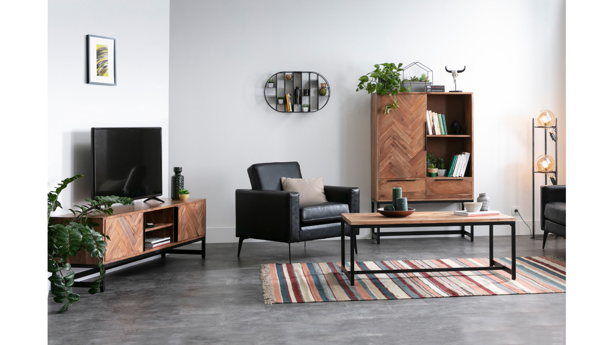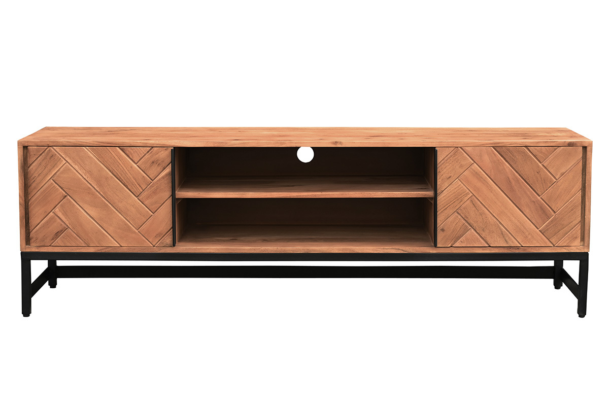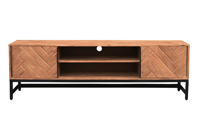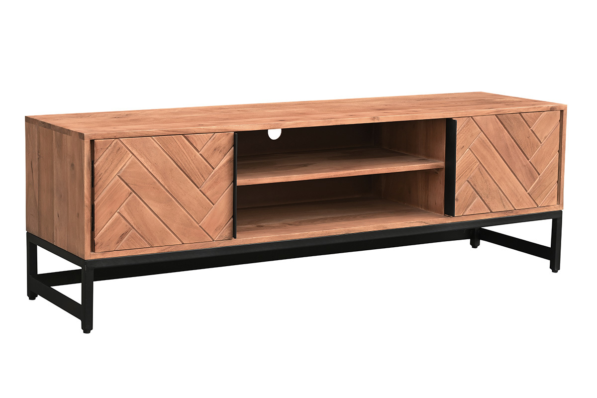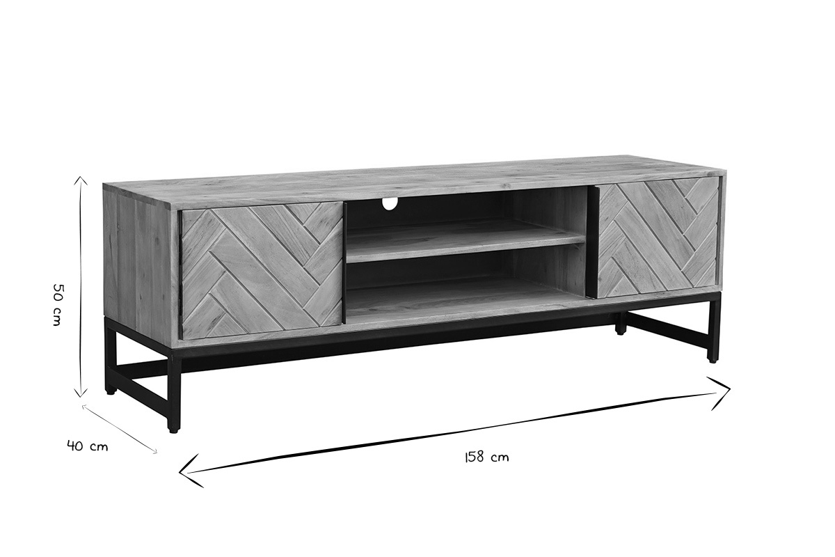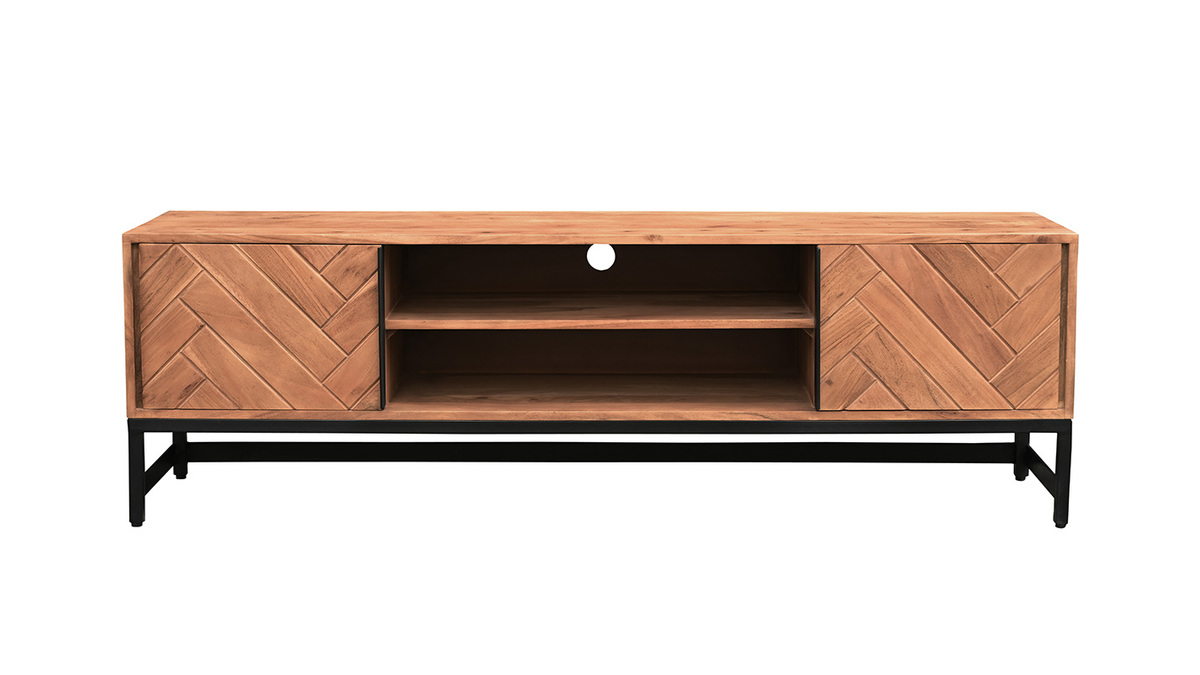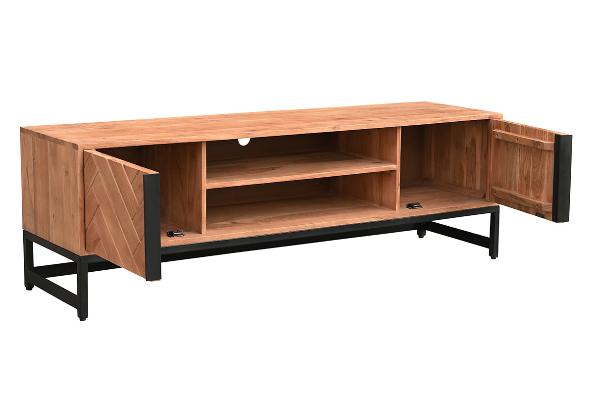 Le modèle STICK associe métal et bois massif pour un effet brut et authentique. Le motif géométrique de ces deux portes apporte une touche singulière à l'ensemble. Ce meuble TV est idéal pour décorer la pièce tout en aménageant un espace de rangement fonctionnel.