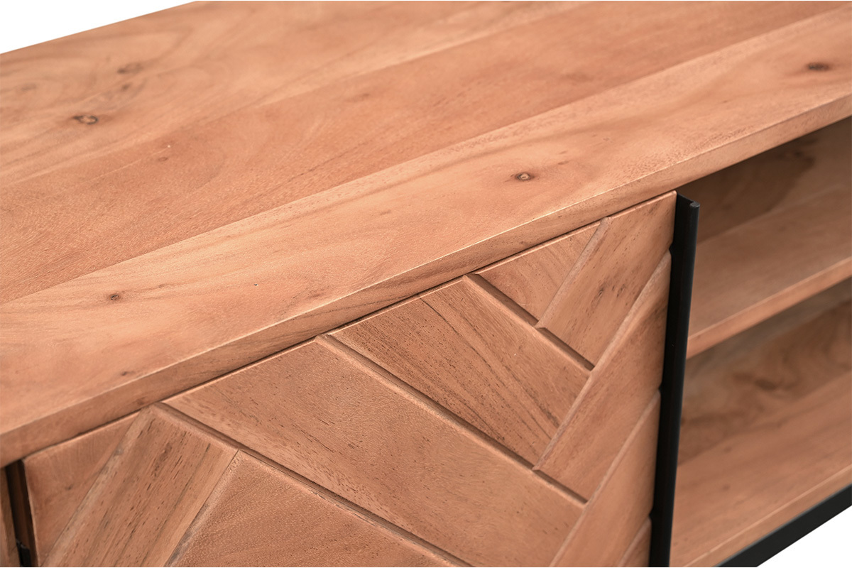 L'acacia est une essence de bois aux tons chauds prononcés. Il est apprécié pour ses nuances uniques et leur rendu chaleureux. Avec le meuble TV STICK, on retrouve tout ce qui fait le charme et la robustesse des meubles en acacia dans une pièce de mobilier originale et moderne !