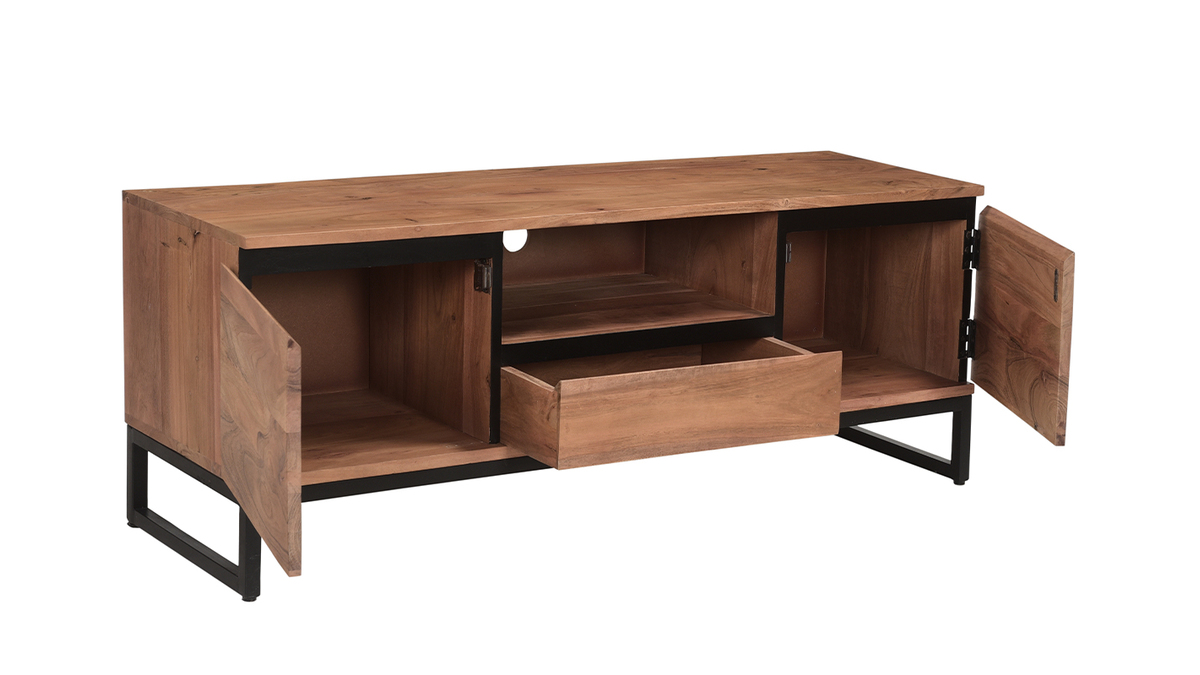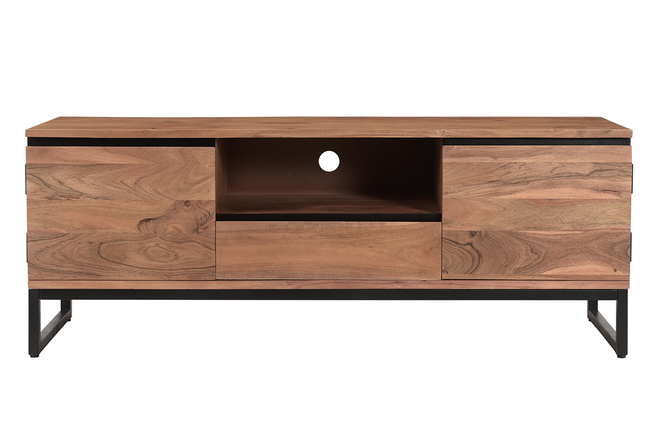 Imaginer un meuble TV gain de place travaillé avec du bois acacia massif ? Défi relevé ! L'acacia est une essence de bois résistante aux tons rougeoyants singuliers : parfait pour équiper les salons tendances avec des meubles de qualité ! Des lignes franches, une essence de bois unique et un piètement moderne en métal noir font tout le charme du meuble TV HOORN. Pour conserver son authenticité, il est réalisé selon des techniques artisanales. Chaque modèle est unique !
