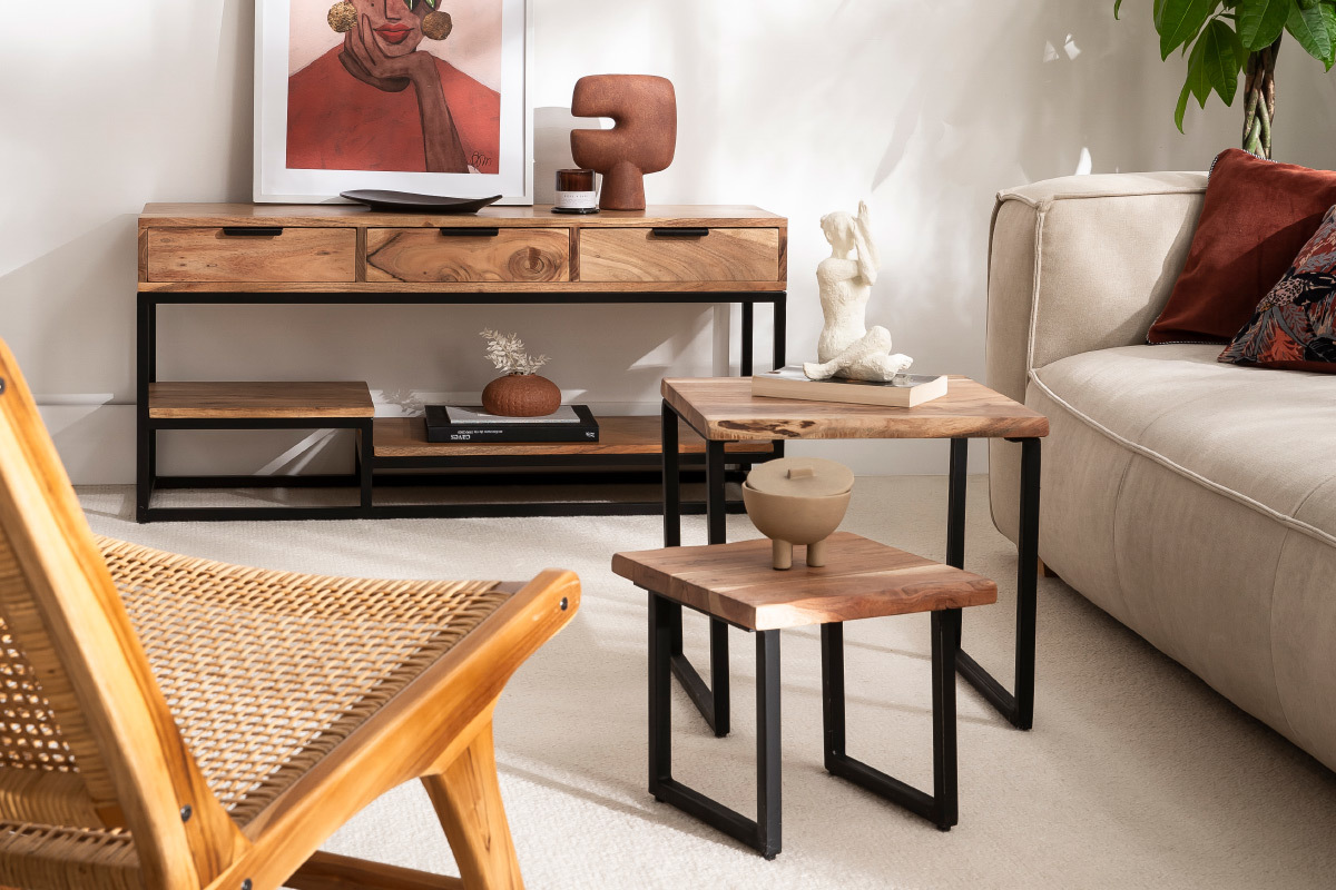 Le mariage du bois et du métal a le vent en poupe dans la sphère déco... et le meuble TV WARREN l'a bel et bien compris !