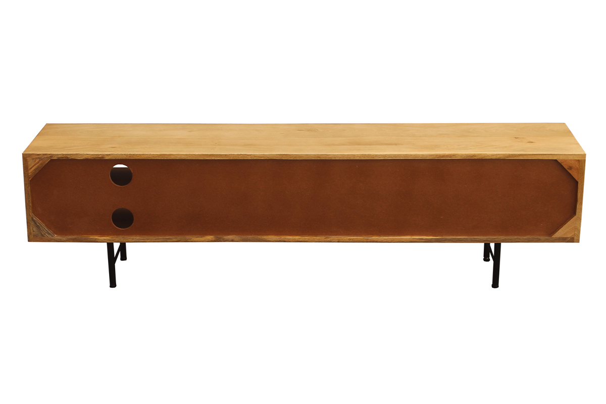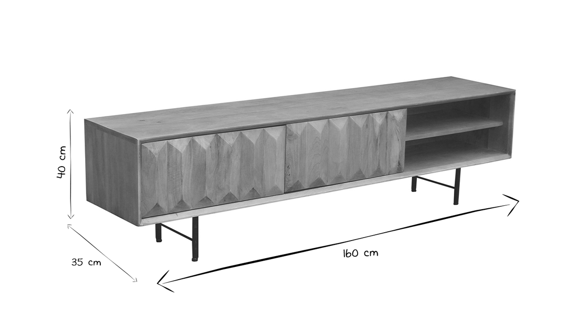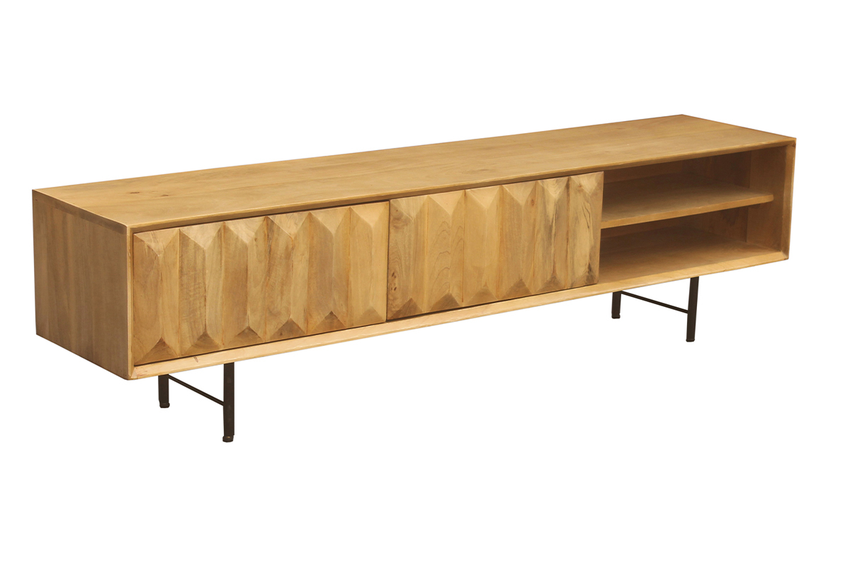 Laissez-vous charmer par l'âme singulière de ce meuble TV en bois massif, fruit d'un savoir-faire artisanal unique.