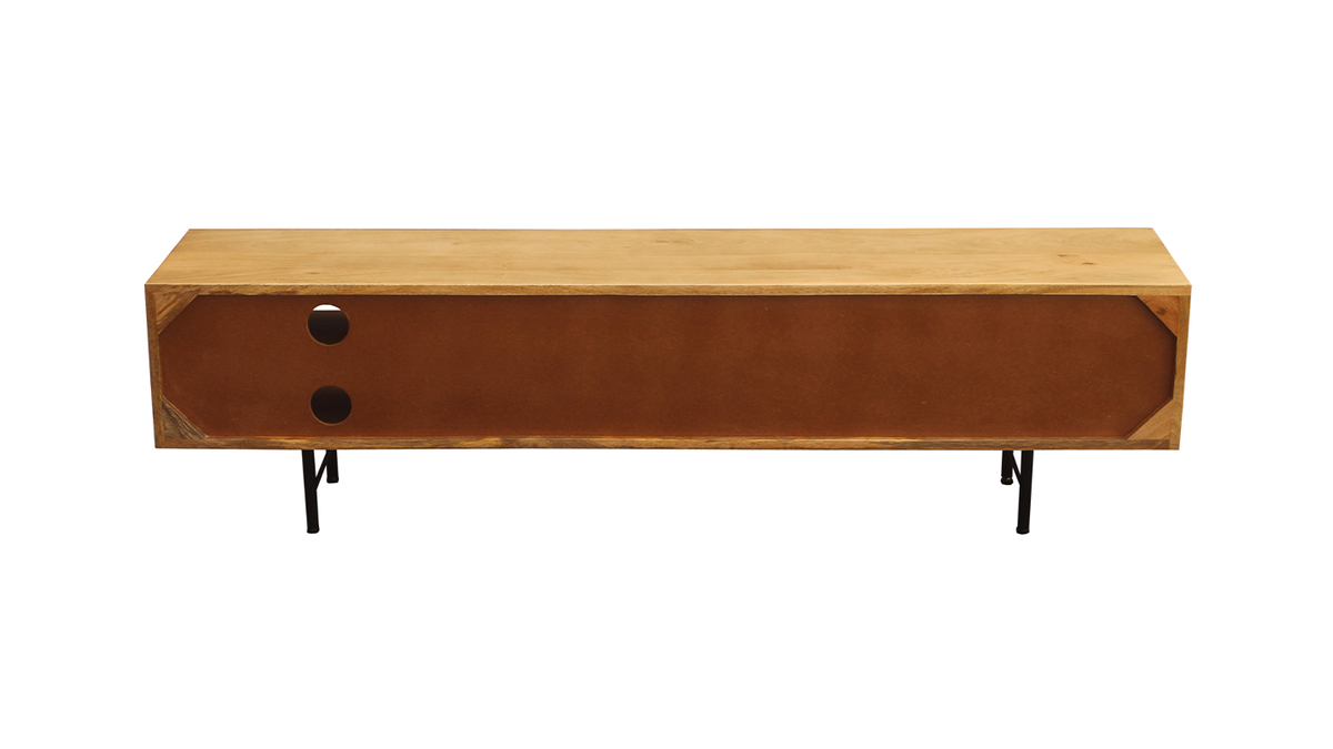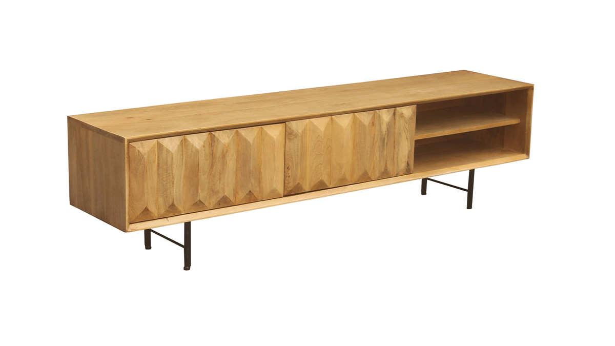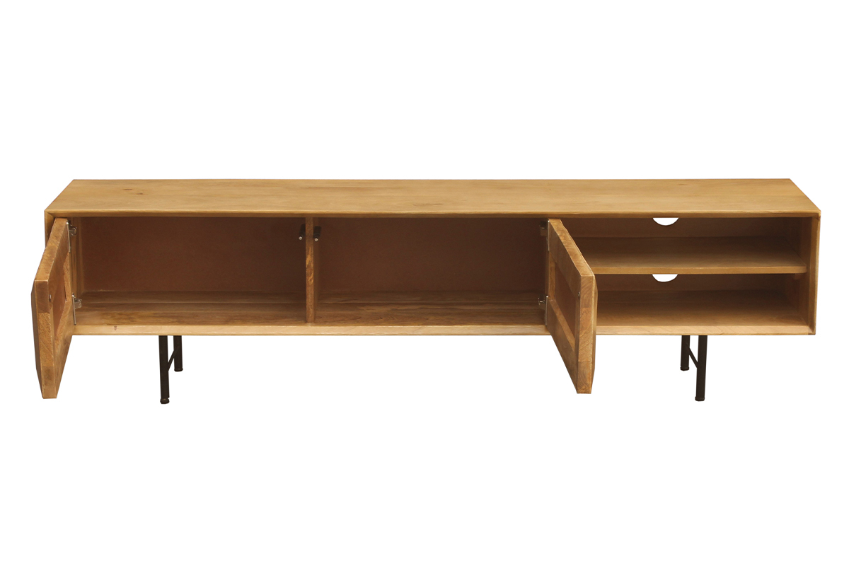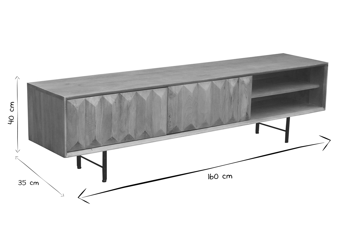 Laissez-vous charmer par l'âme singulière de ce meuble TV en bois massif, fruit d'un savoir-faire artisanal unique.