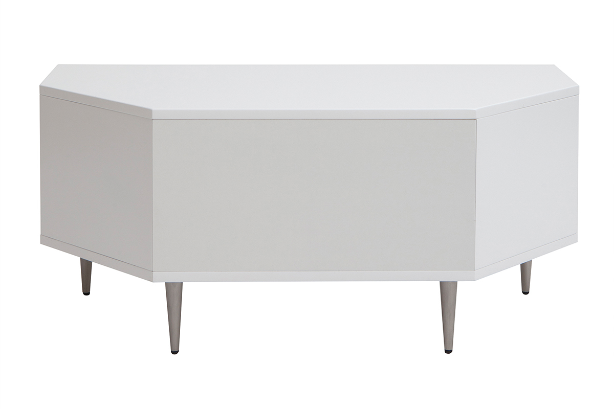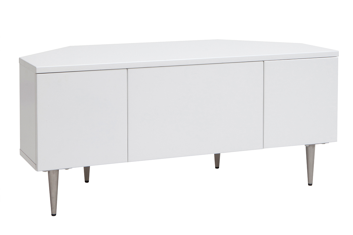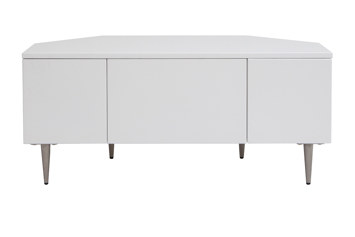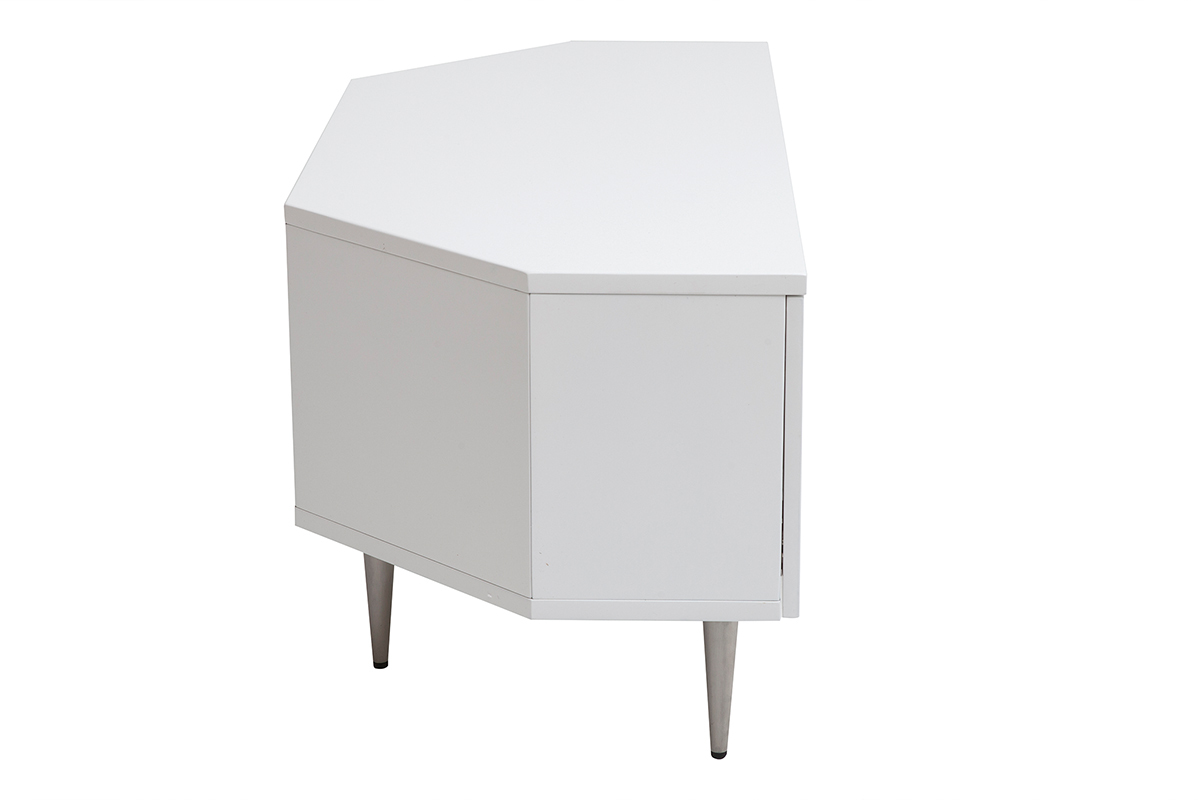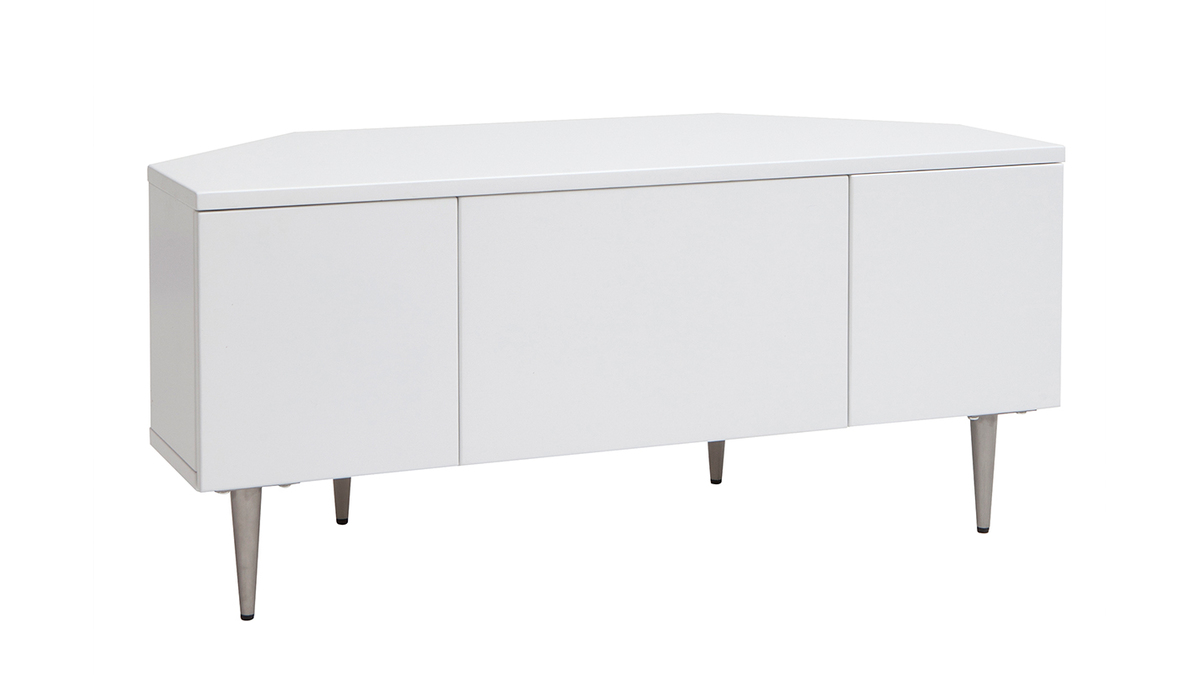Pratique et design, ce meuble d'angle est l'incontournable des séjours bien agencés. Semi-octogonal, il épousera vos murs pour un gain de place appréciable, sa forme originale assurera un espace ouvert à l'arrière pour cacher vos câbles d'appareils multimédias.