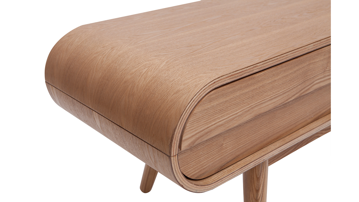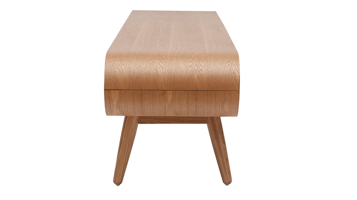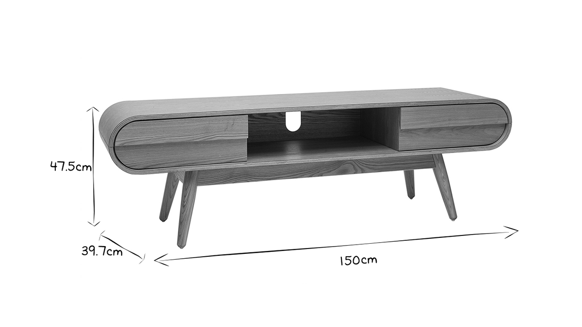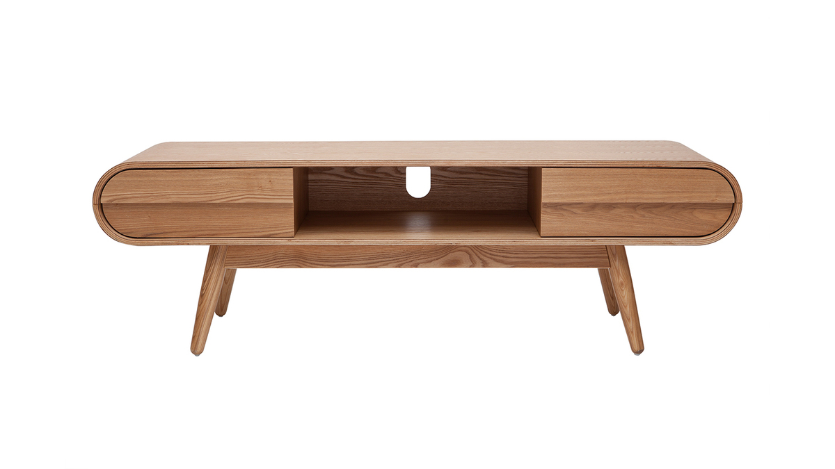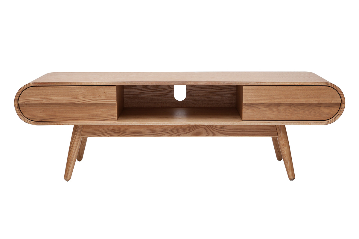 - Unique : ce meuble TV se caractérise par des formes arrondies très atypiques qui lui donnent un charme inconditionnel. Son piètement en hévéa massif fini d'un placage frêne vient terminer ce meuble et lui donner un look élégant et raffiné.
