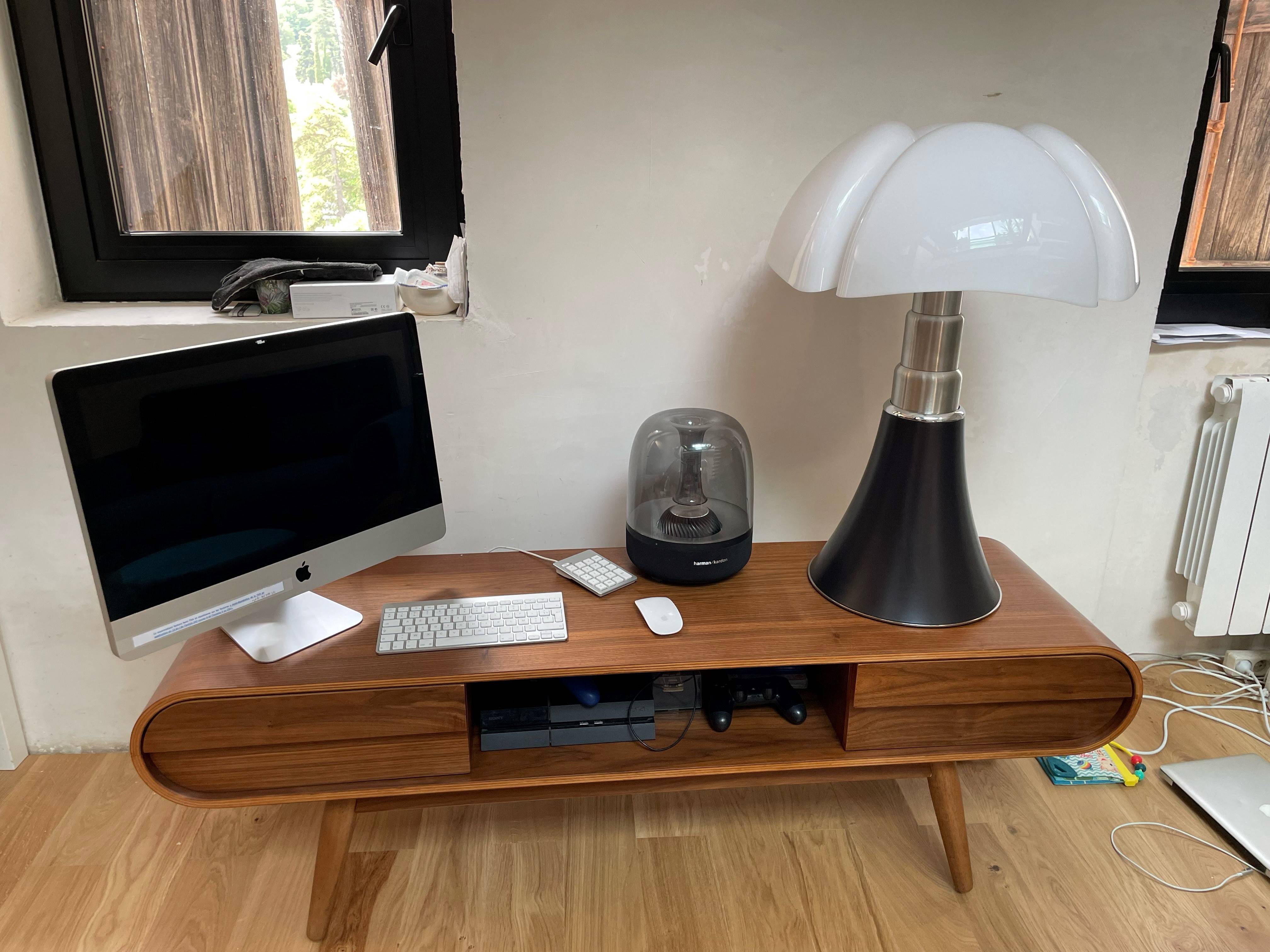 - Unique : ce meuble TV se caractérise par des formes arrondies très atypiques qui lui donnent un charme inconditionnel. Son piètement en hévéa massif fini d'un placage noyer vient terminer ce meuble et lui donner un look élégant et raffiné.