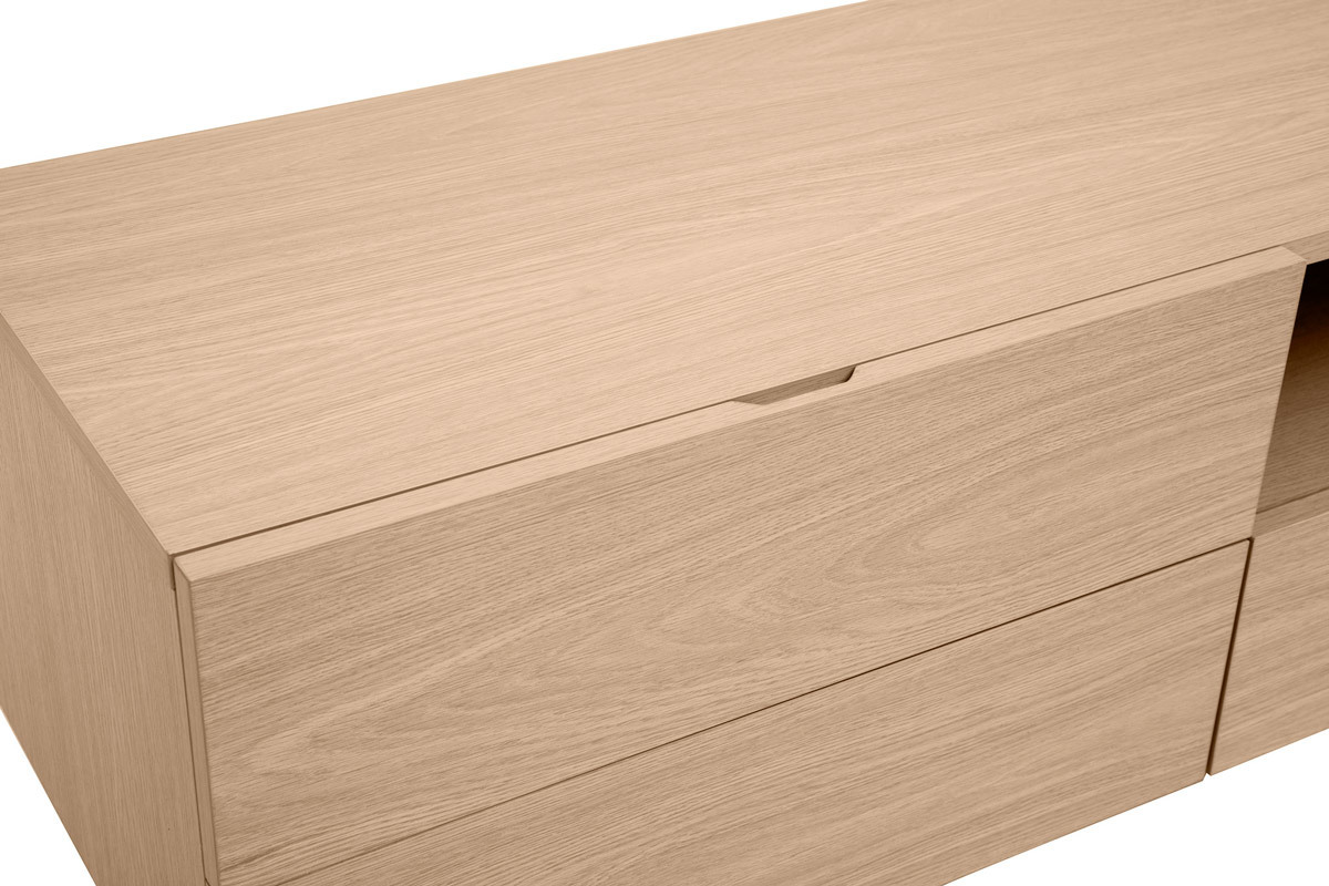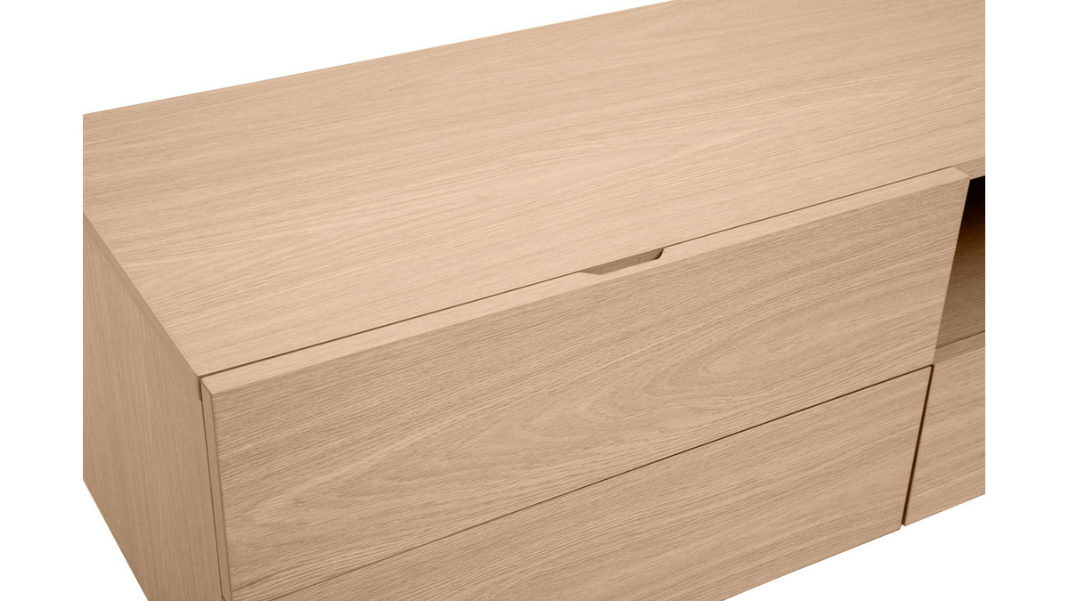 Dans un séjour contemporain ou plus classique, ce meuble TV design finition chêne est un indispensable pour parfaire une décoration d'intérieur, à la fois chaleureuse et tendance.