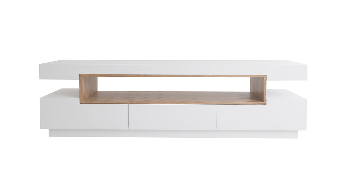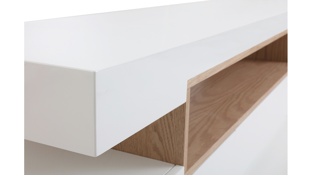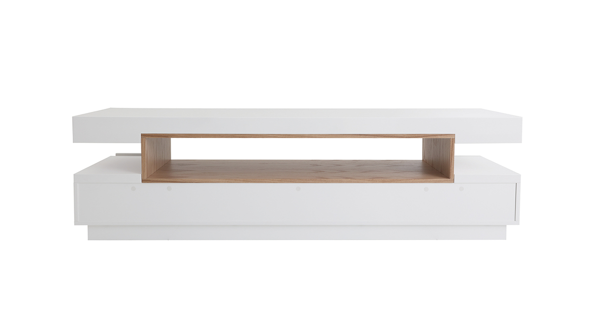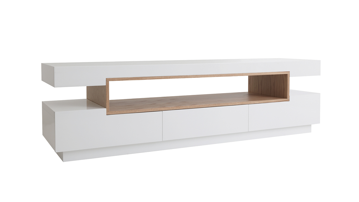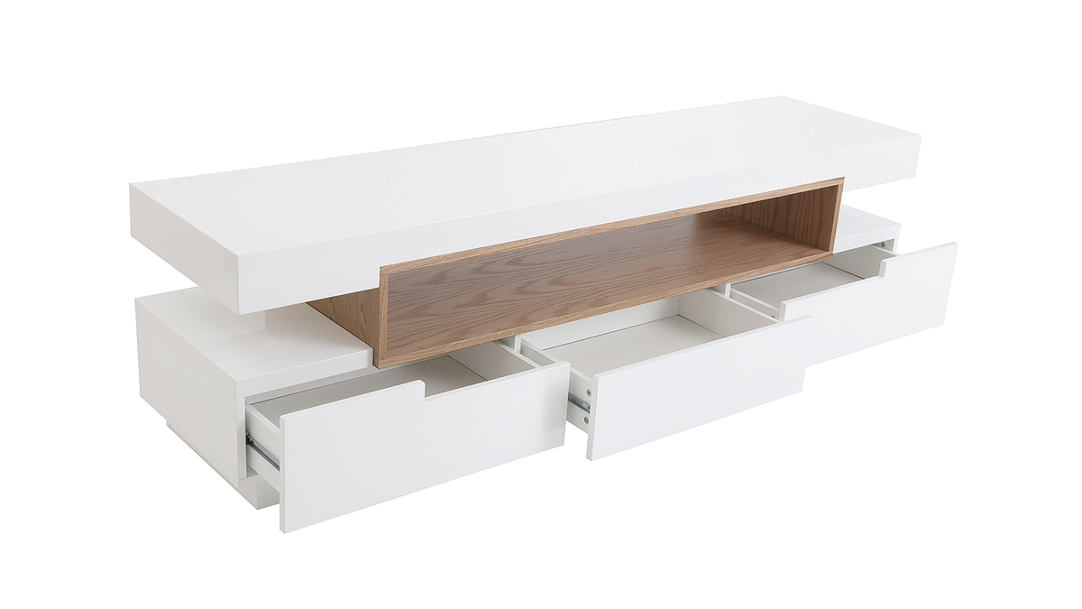 Le meuble TV LIVO c'est la chaleur du bois associée à l'éclat d'une finition blanc brillant pour un rendu moderne et élégant.
