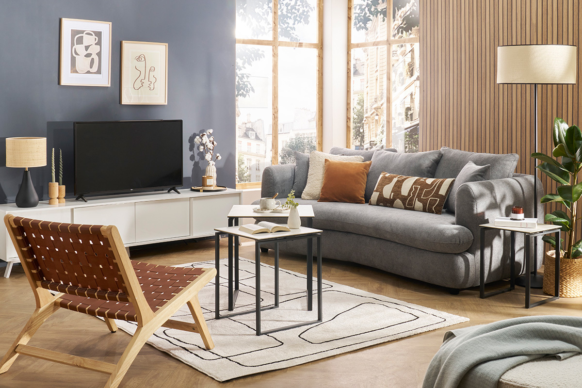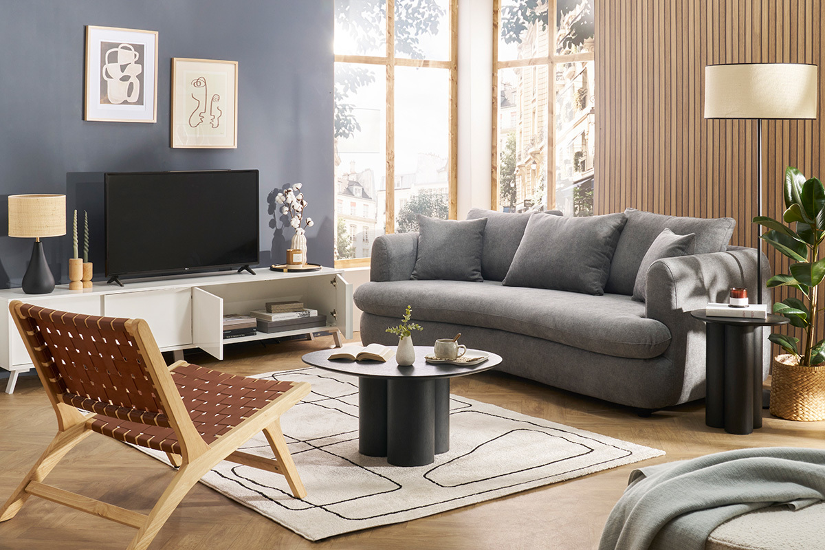 Parfait pour mettre en valeur votre petit - voire grand ! - écran, ce meuble TV bas aux dimensions L204.8 x P39.9 x H47.5 cm soulignera une télévision sur pieds ou fixée au mur, laissant ainsi le grand plateau (L204.8 x P39.9 cm) libre pour y déposer de la petite déco, une plante, un vase, un cadre, des bougies... Pour habiller votre coin télé d'un halo de lumière feutré et délicat, misez sur une lampe à poser ou un lampadaire. Aux côtés de NEMA, ces luminaires seront du plus bel effet pour instaurer une ambiance cocooning et relaxante...