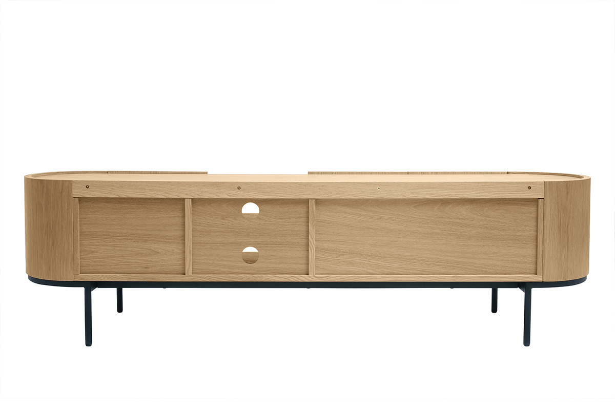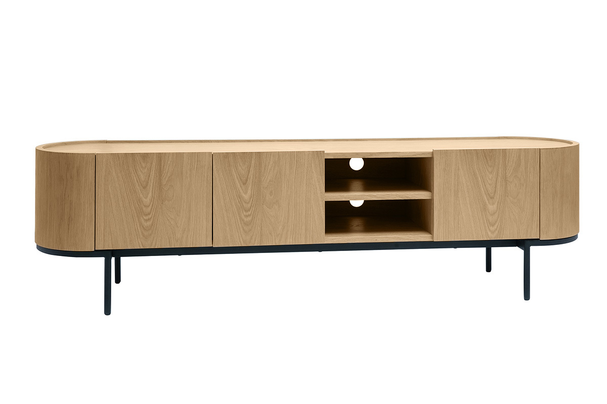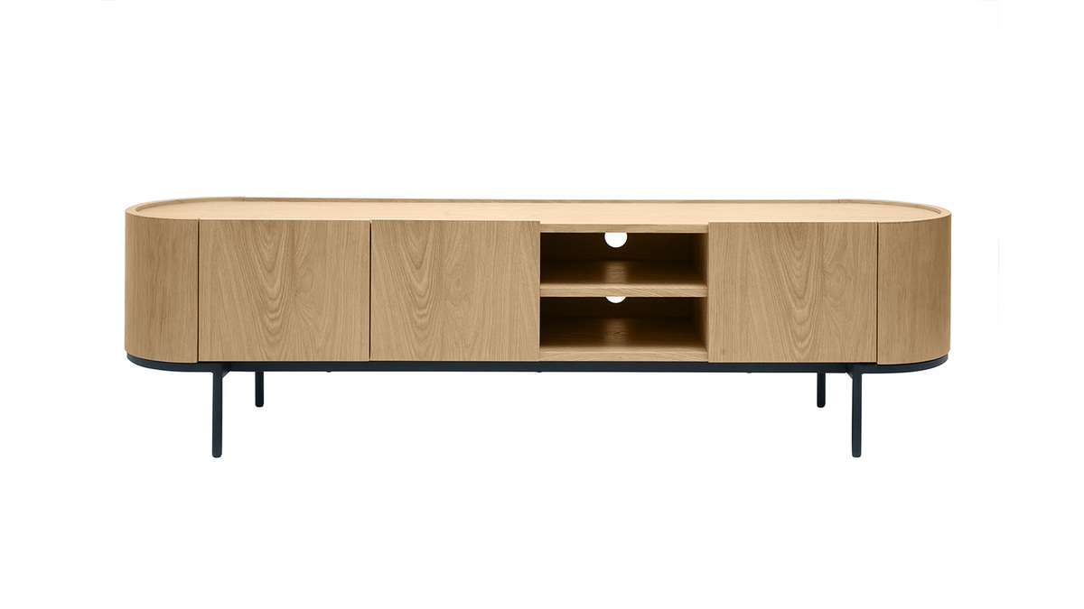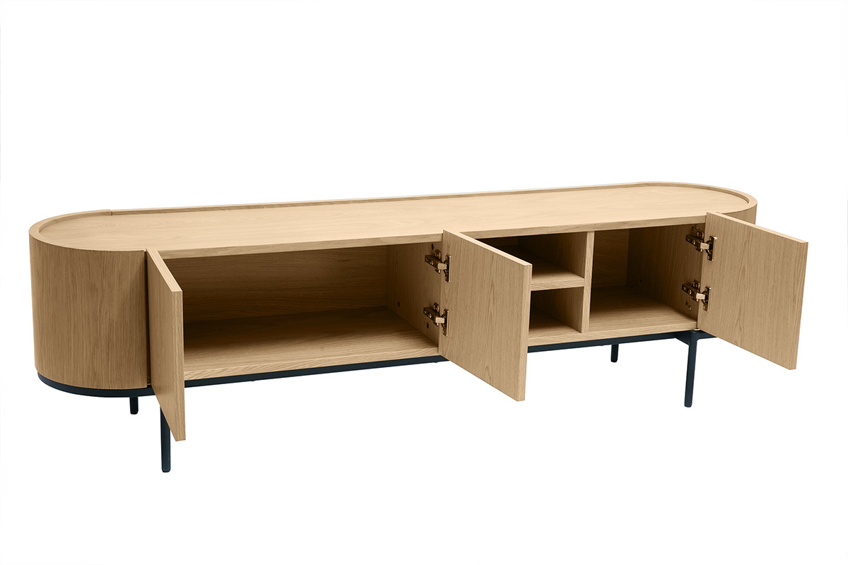 Meuble TV design bois clair et métal noir avec rangements L180 cm SKYE avec rangements livré à assembler.