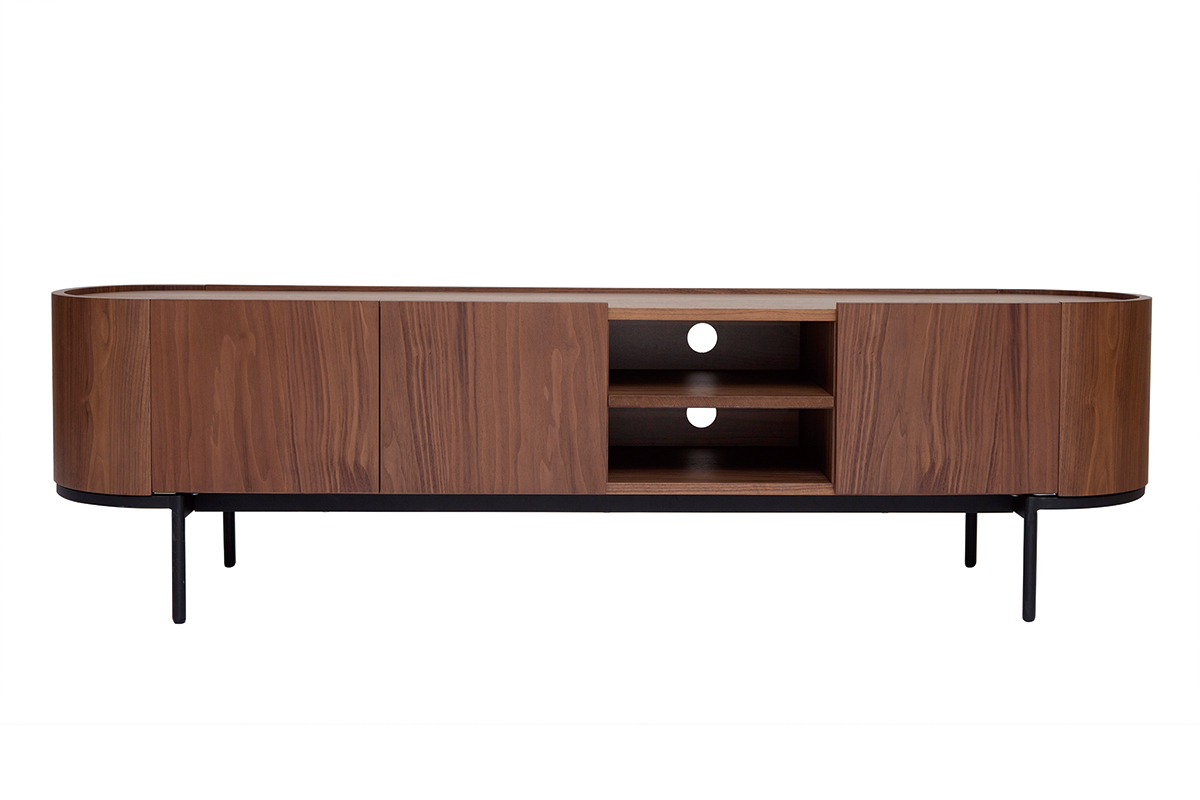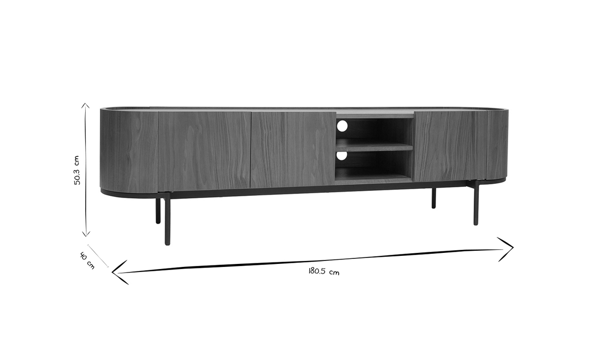 Meuble TV design bois foncé et métal noir avec rangements L180 cm SKYE avec rangements livré à assembler.
