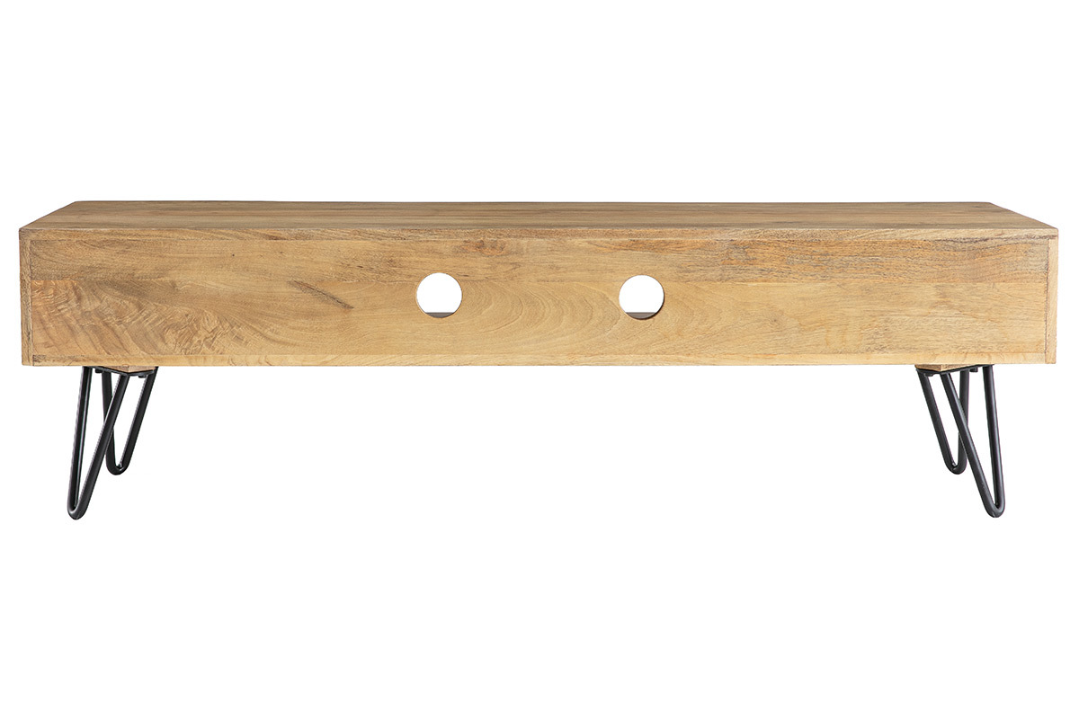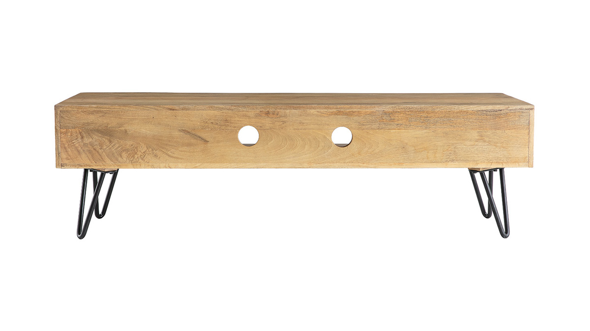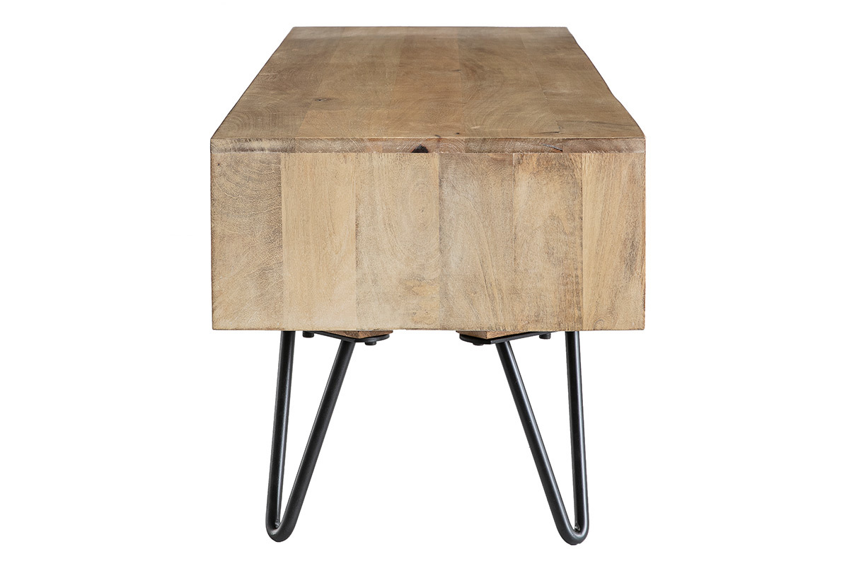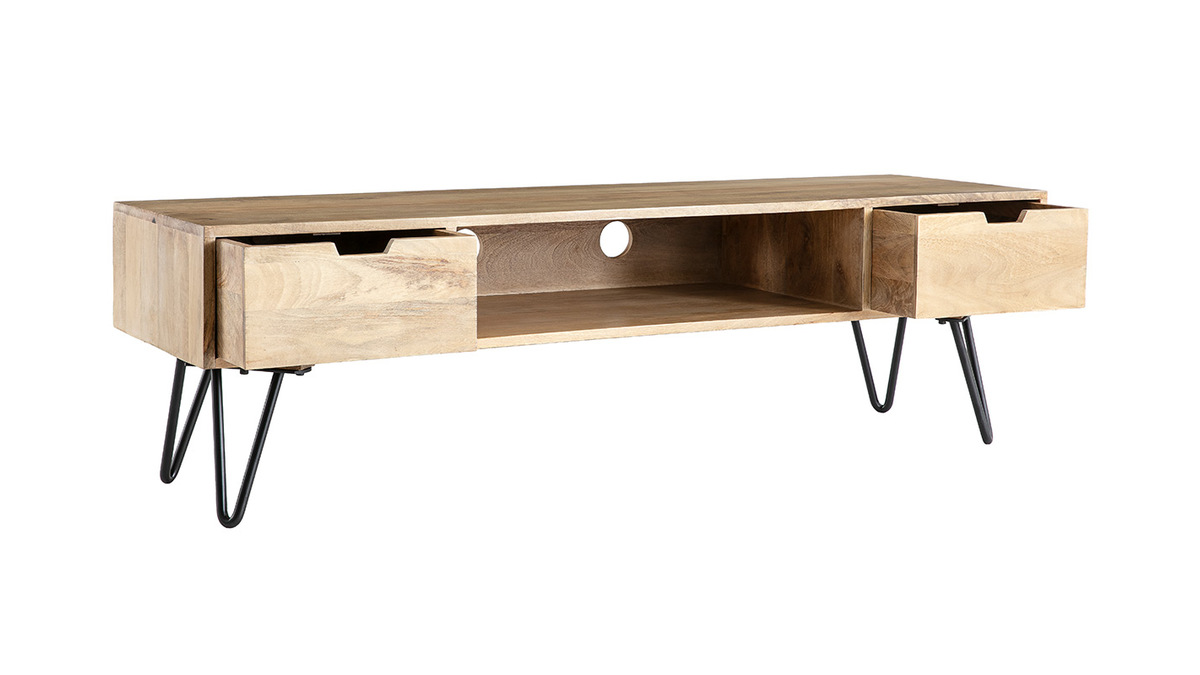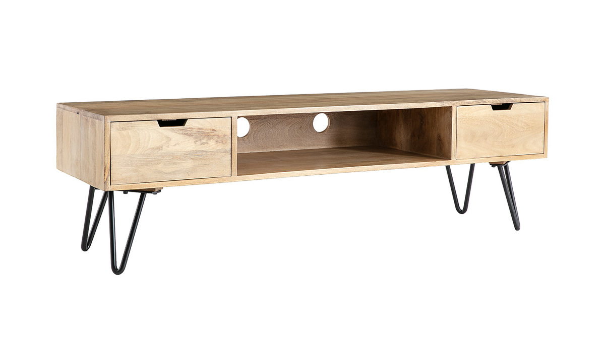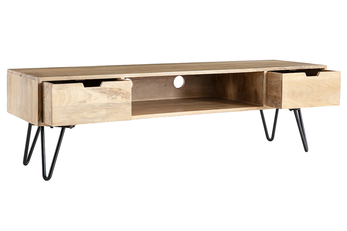 Meuble TV en bois manguier massif et métal noir L150 VIBES livré prêt à assembler.