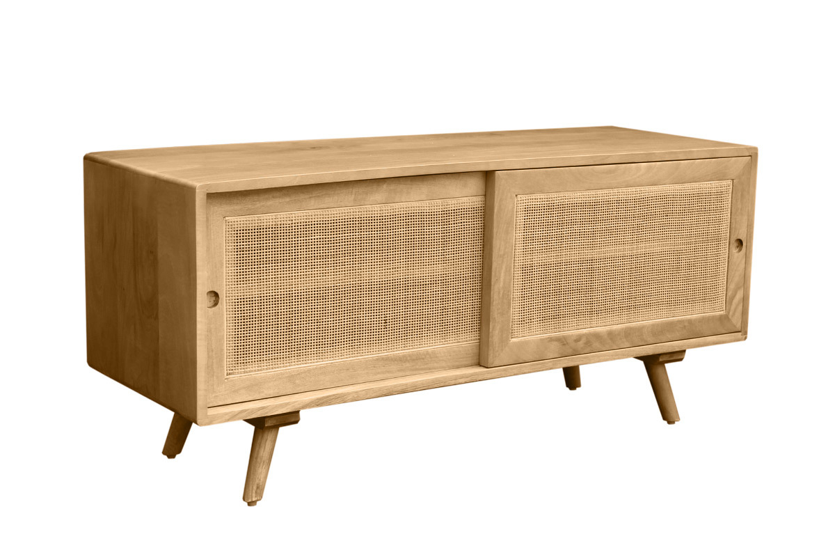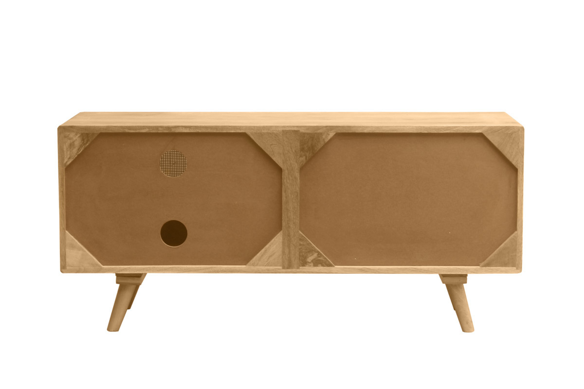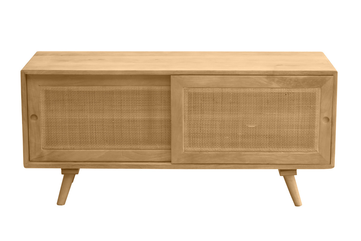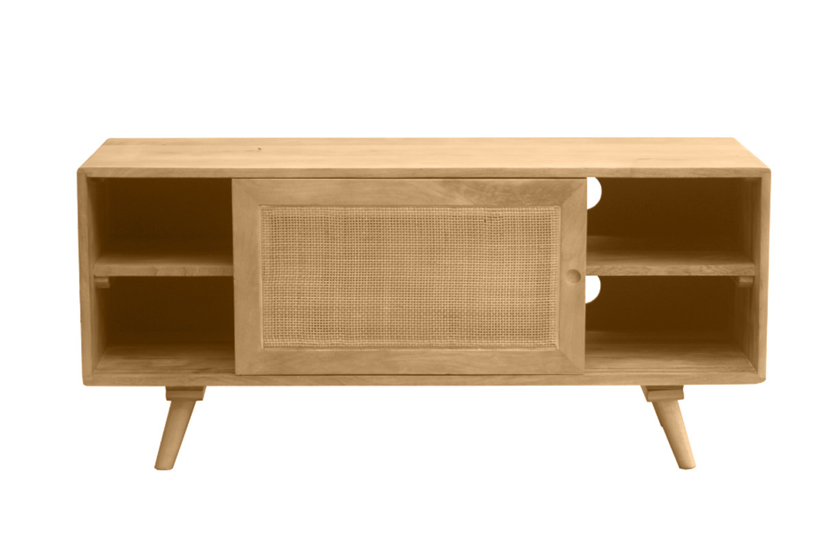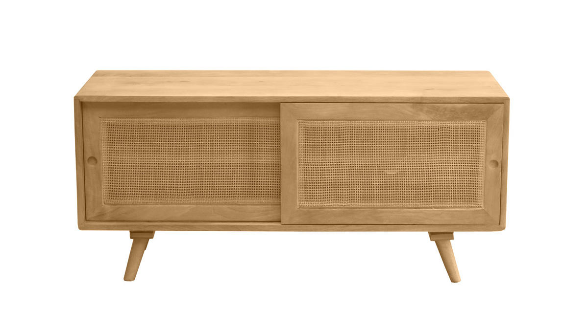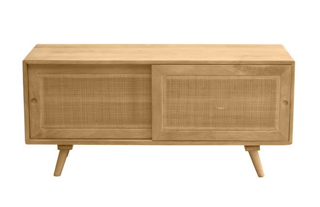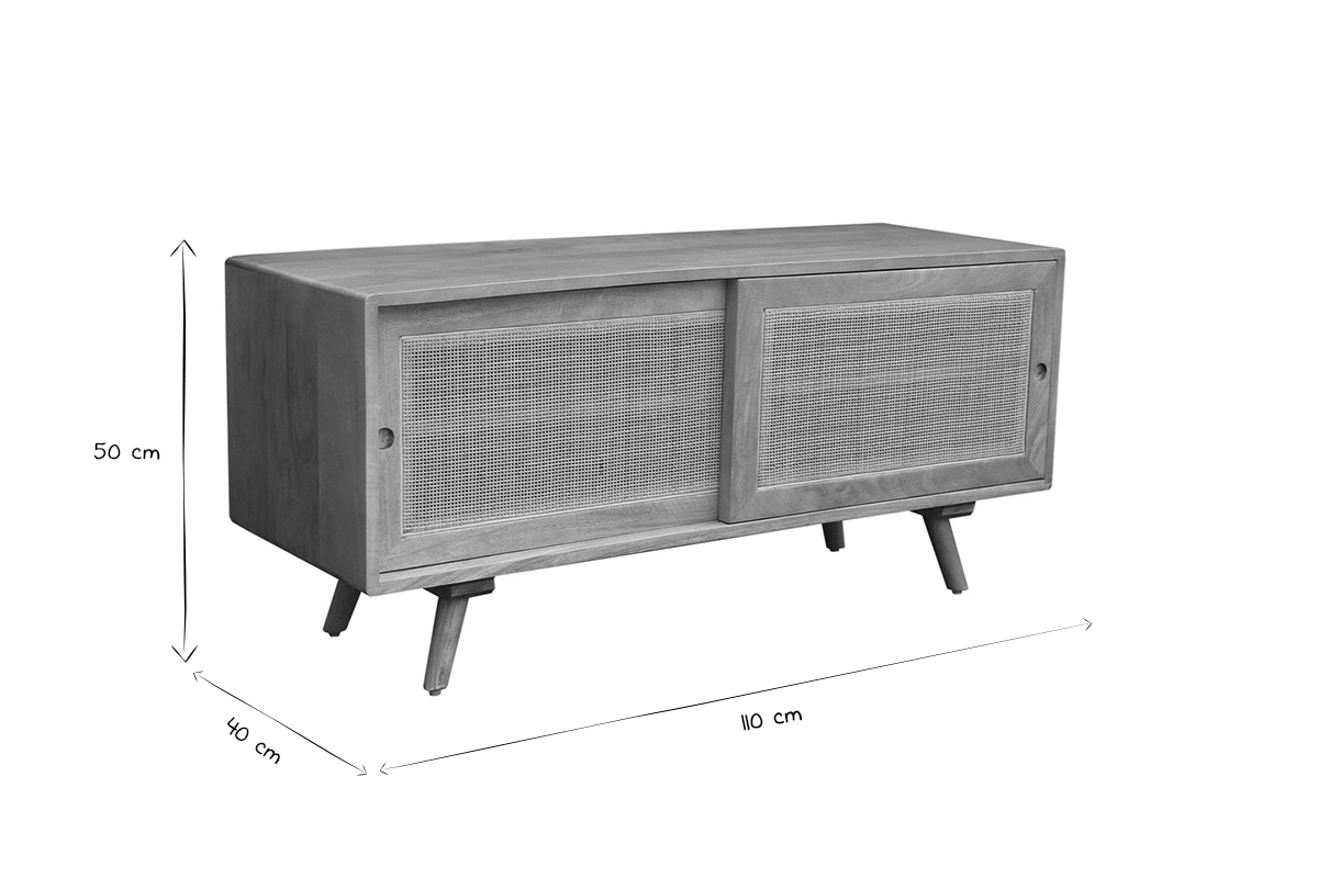 Conçu en manguier, ce meuble TV vintage arbore un esprit nature des plus envoûtants. Ses portes, composées de rotin sous forme de cannage, en font une pièce à la fois intemporelle et particulièrement tendance.