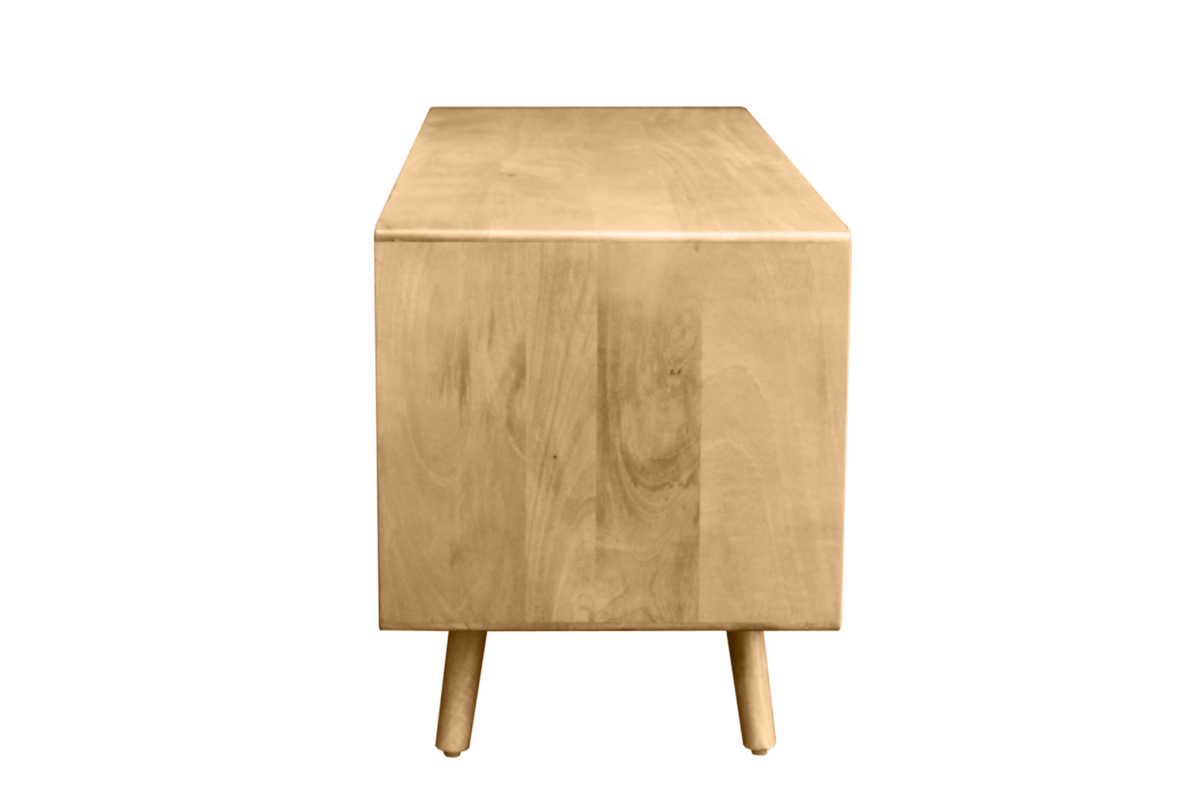 Le meuble TV en bois massif ACANGE trouvera sa place dans un intérieur aux tons naturels et chaleureux, mais pourra tout aussi bien s'intégrer au coeur d'une déco plus vintage. Accompagnez-le d'un canapé design, neutre ou coloré !
