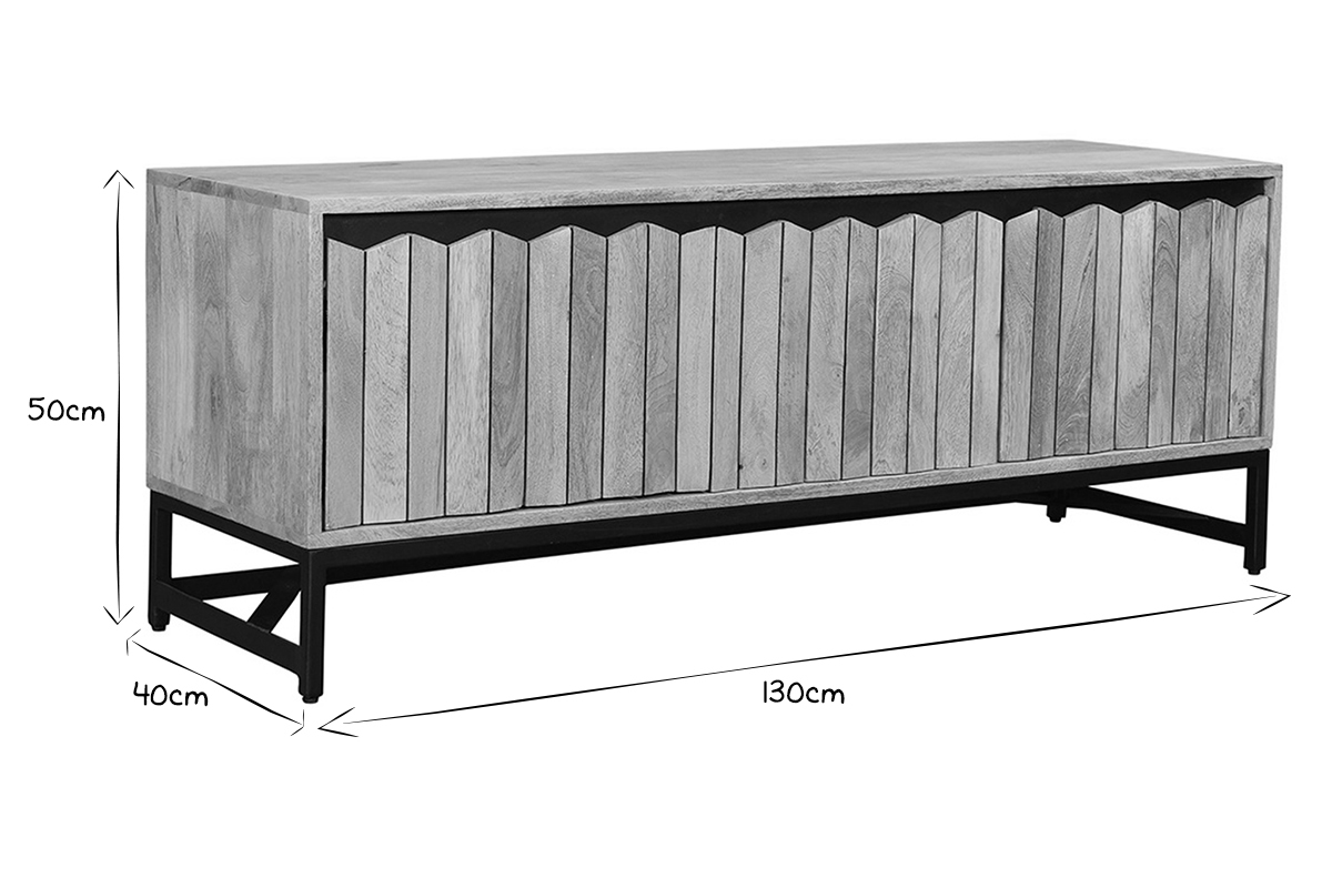 Grâce à son plateau de 130 cm et son passe-câble, ce meuble accueille facilement un écran TV. Il dispose de trois rangements (L40 x P34 x H31 cm) qui permettent de garder le salon parfaitement ordonné.