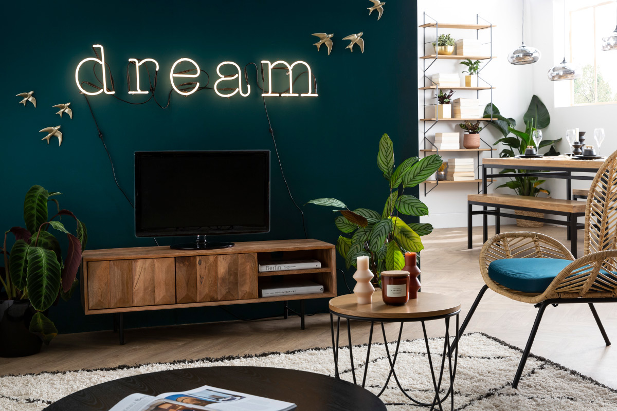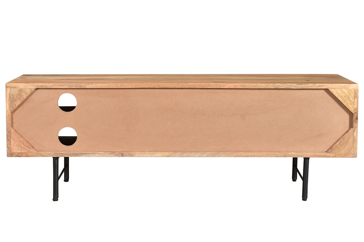 Avec ses 120 cm de long, ce meuble TV en bois massif est adapté aux petits comme aux grands salons. Si vous aimez le charme de ce meuble, accordez-le avec le buffet de la même collection.