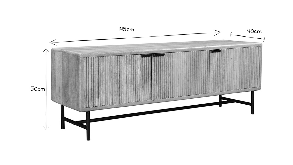 Grâce à ses dimensions (L145 x P40 x H50 cm), MORISSON trouve parfaitement sa place dans la pièce à vivre et permet d'installer aisément un écran TV. Robuste, il s'agit également d'un meuble pratique grâce à ses trois rangements (L43 x P35 x H29 cm) et son passe-câble.