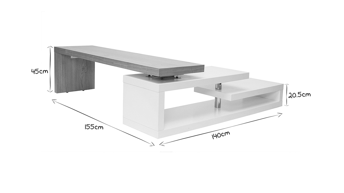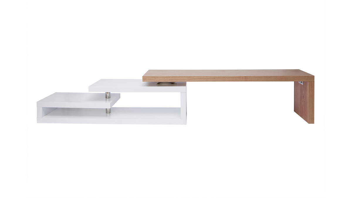 Espace télé exigu ; petit séjour ; grande pièce multifonction... le meuble TV MAX a été créé pour s'adapter à tous les intérieurs. Avec son système rotatif, il peut se faire tout petit comme déployer sa belle longueur. Son plateau est équipé de roulettes et pivote à 360° pour adopter toutes les positions. En angle, légèrement ouvert, complètement fermé... enfin un meuble TV qui se plie à nos envies !