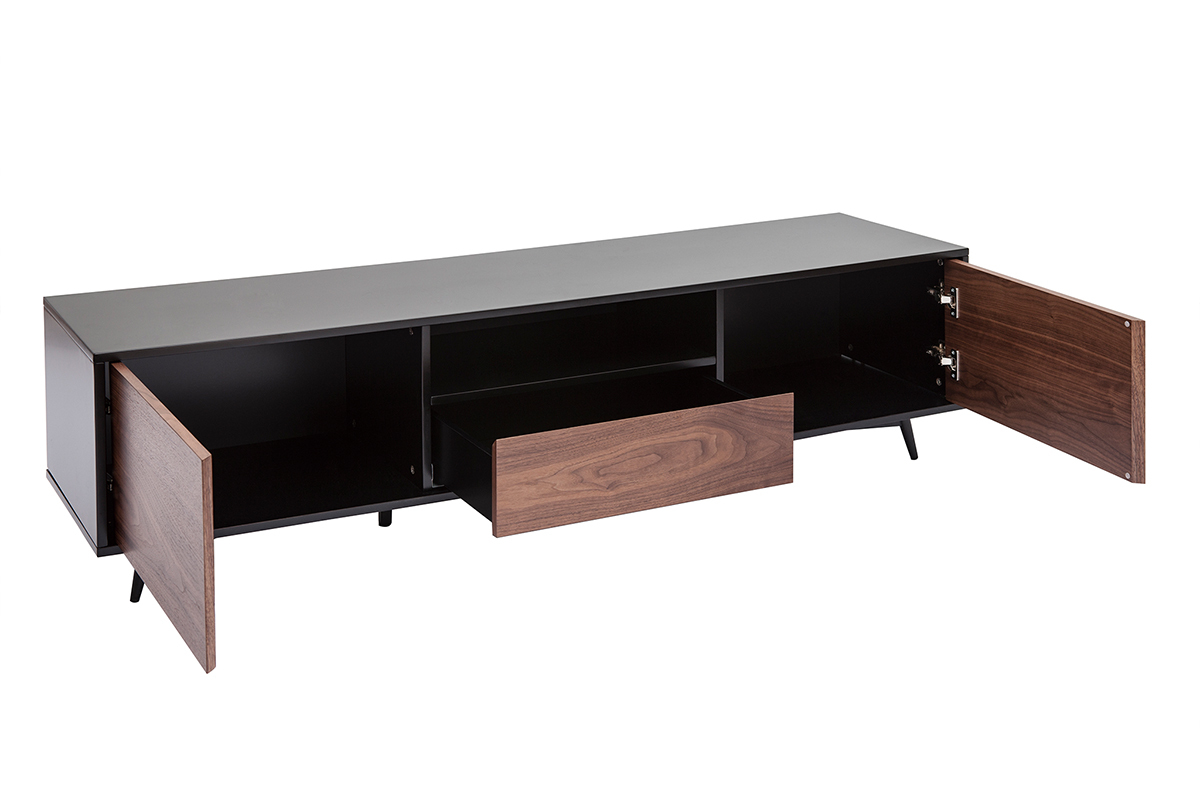 Matières : Panneaux de fibres de bois placage noyer et finition noir mat - pieds en métal