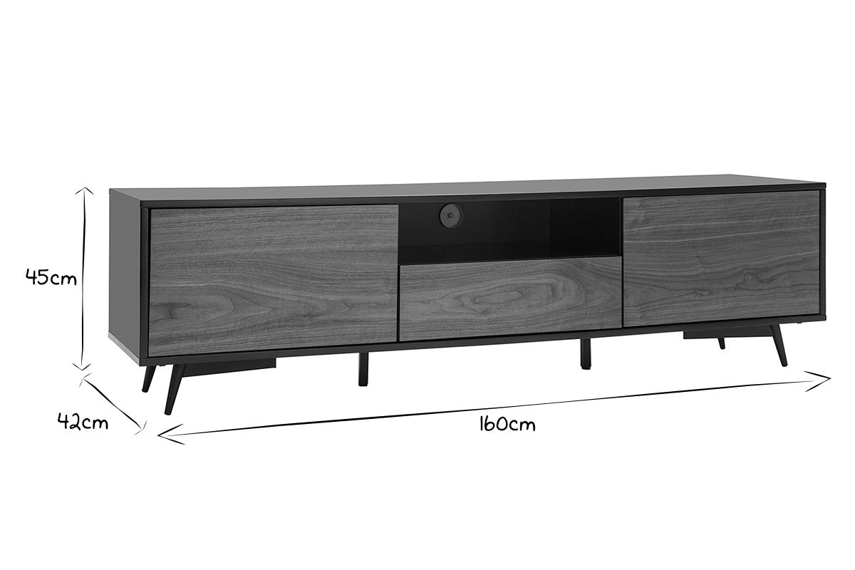 Grâce à ses nombreux et différents types de rangement, MERMOZ coche tous les critères en termes de fonctionnalité. Tout en longueur (L160 x P42 x H45 cm) le plateau accueillera un grand téléviseur ou des objets déco s'il souligne un écran fixé au mur. Les deux spacieuses niches fermées latérales sont complétées par un grand tiroir central : parfait pour ranger à l'abri des regards objets connectés, magazines, télécommandes... Équipée d'un passe-câbles, la niche ouverte sera un emplacement tout trouvé pour une box ou un accessoire home-cinema.