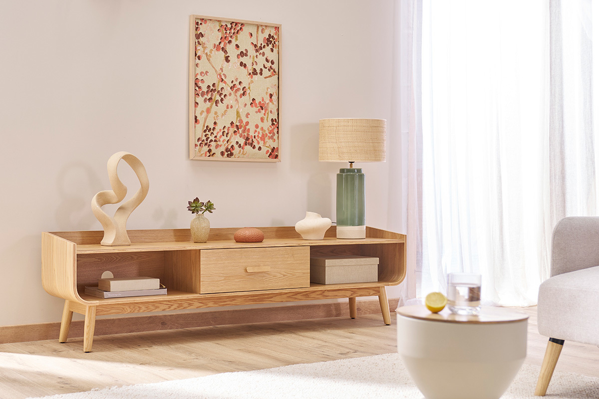 Avec le meuble TV en bois clair HALLEN, apportez une touche nordique à votre salon.