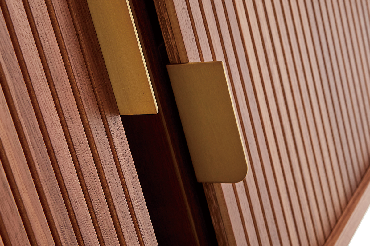 Matière caisson : panneaux de fibres de bois placage noyer et métal doré