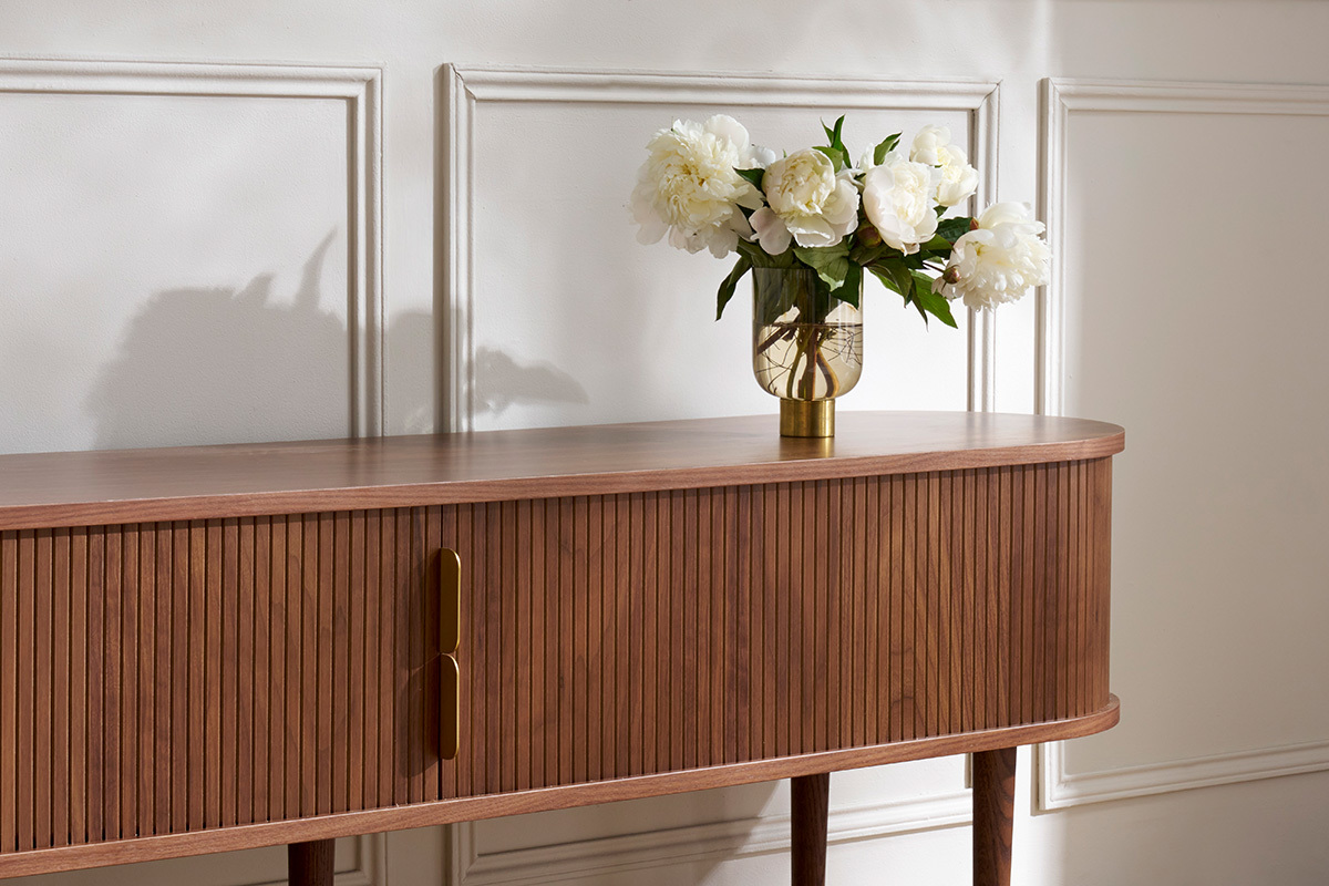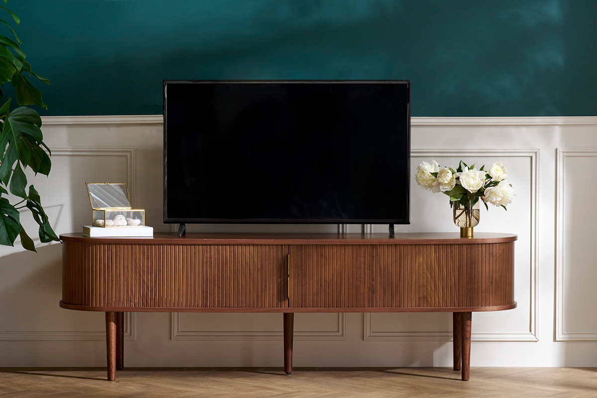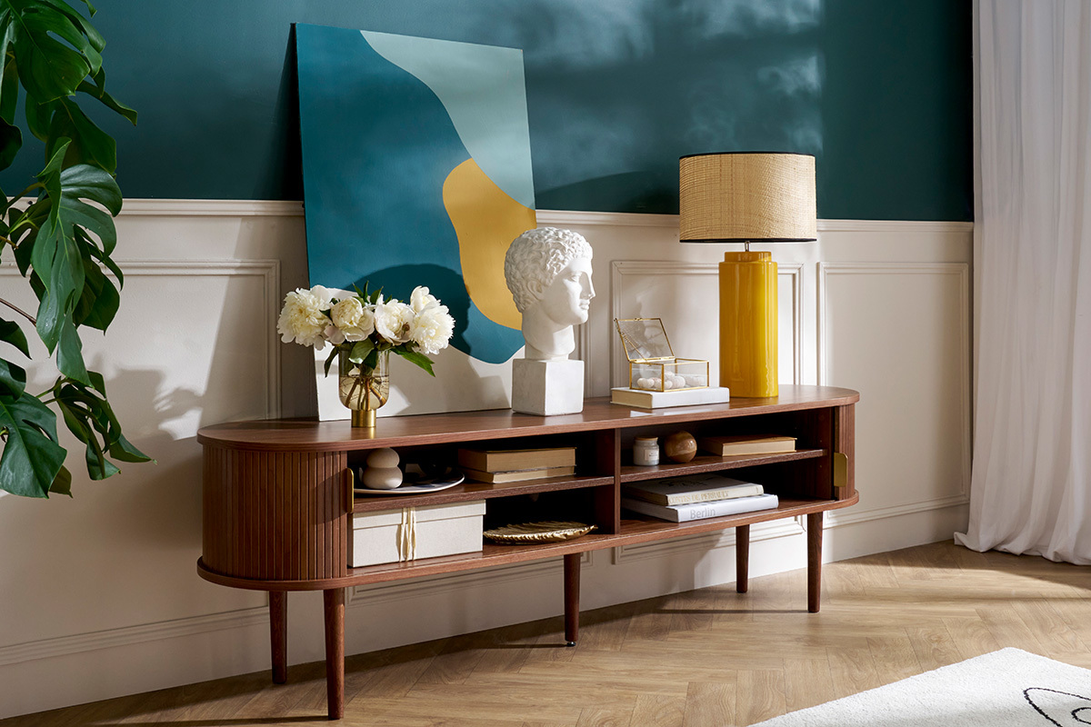 Tout comme le reste de la collection EPIC, ce meuble TV rétro se nourrit du charme du passé. Ses angles galbés et ses pieds fuselés ne sont pas sans rappeler les meubles iconiques des 70's !