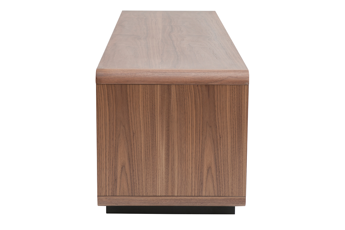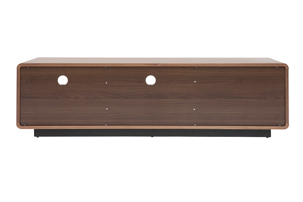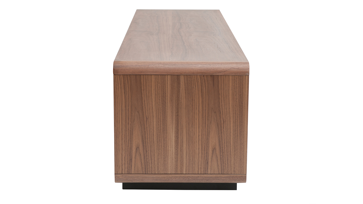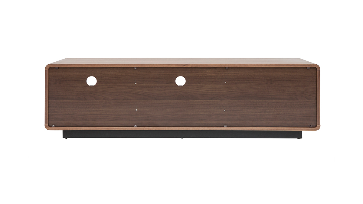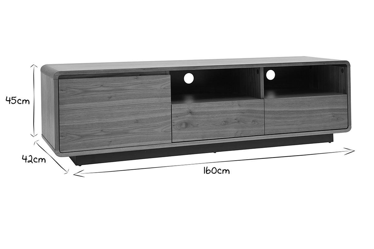 Fonctionnel et aux dimensions bien pensées (L160 x P42 x H45 cm), ce grand meuble TV en bois foncé noyer et métal noir mettra à disposition ses nombreux rangements sans encombrer l'espace ! Grâce à ses deux niches ouvertes, deux tiroirs et sa spacieuse niche fermée, vous ne manquerez pas de place pour vos objets connectés, accessoires hi-fi, magazines et petits objets du quotidien.