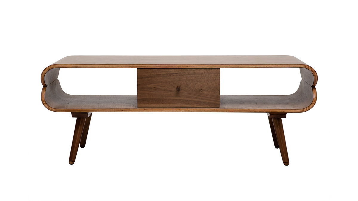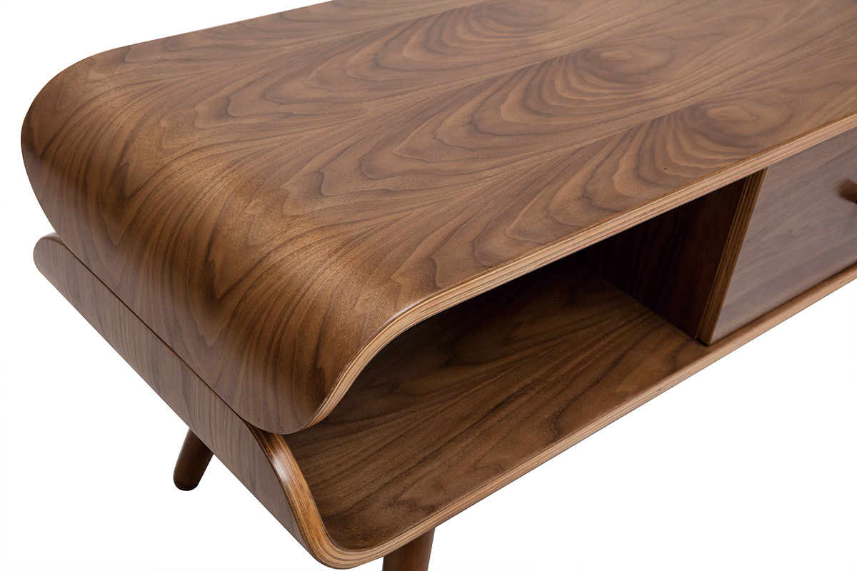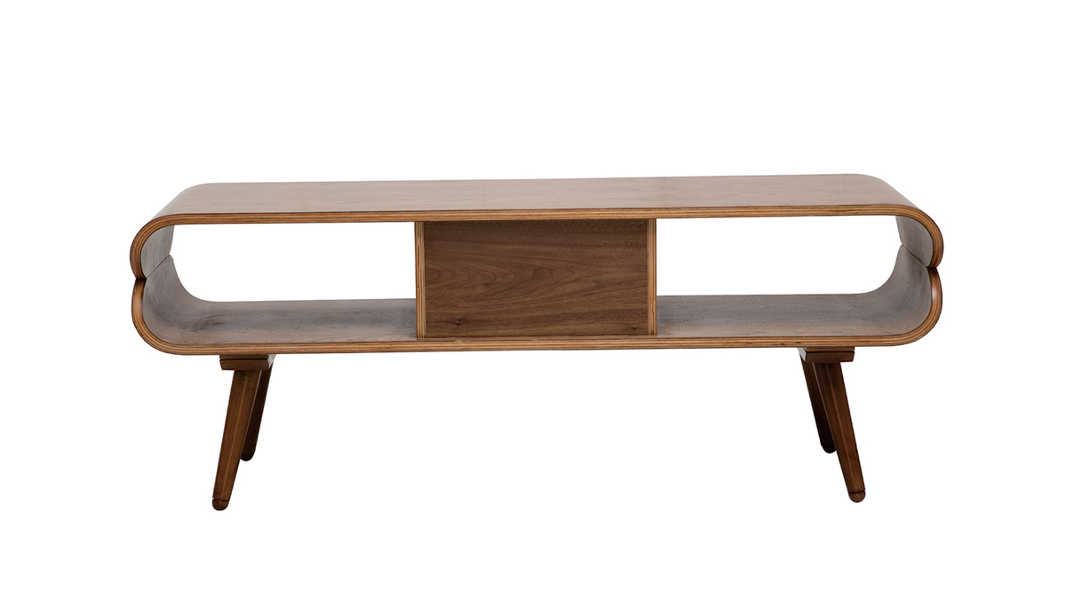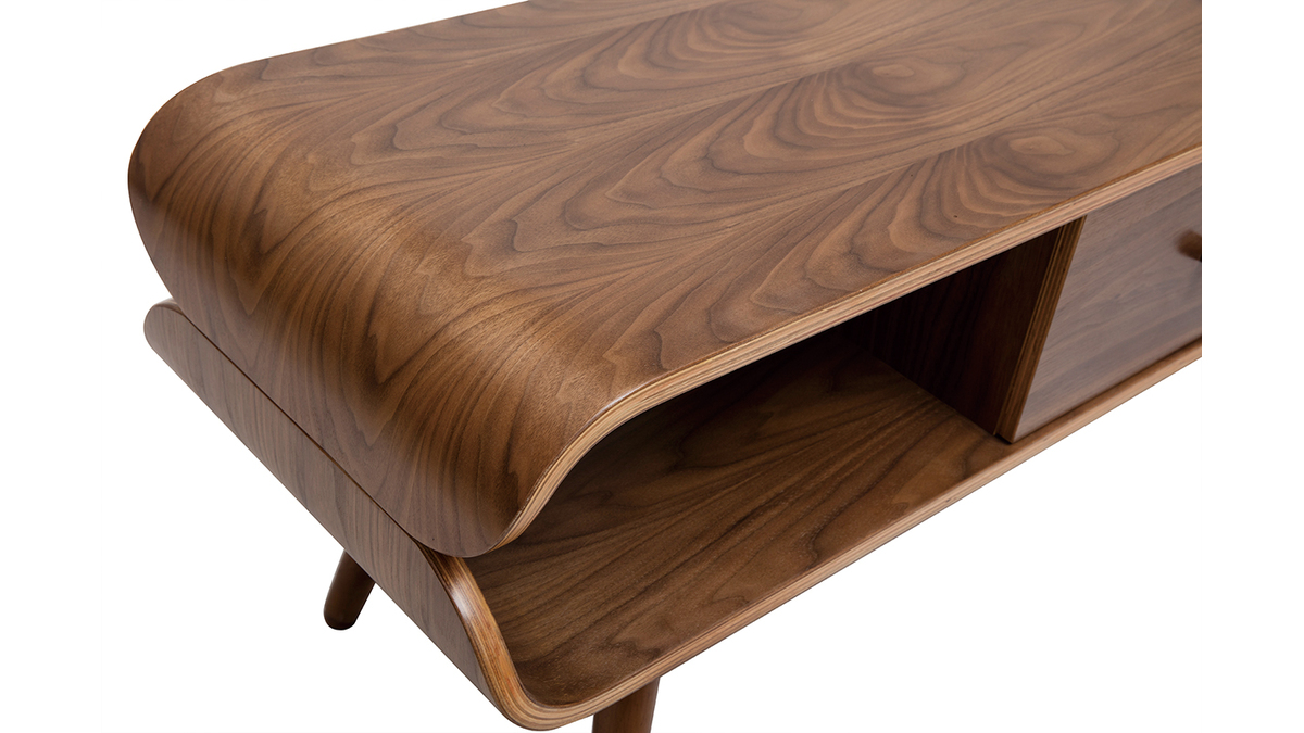 Avec sa jolie finition noyer, ce meuble TV est une pièce chaleureuse qui formera un beau duo avec un canapé vintage.