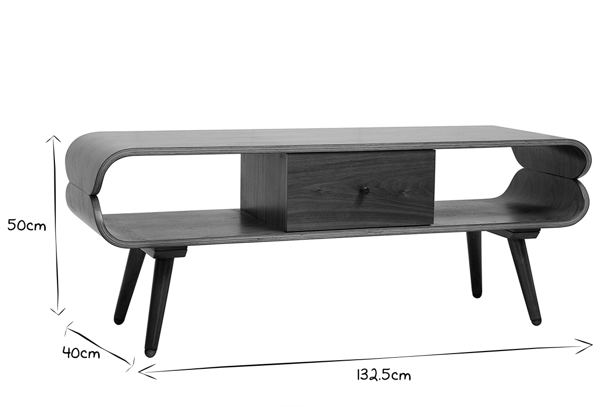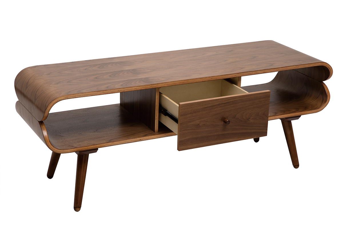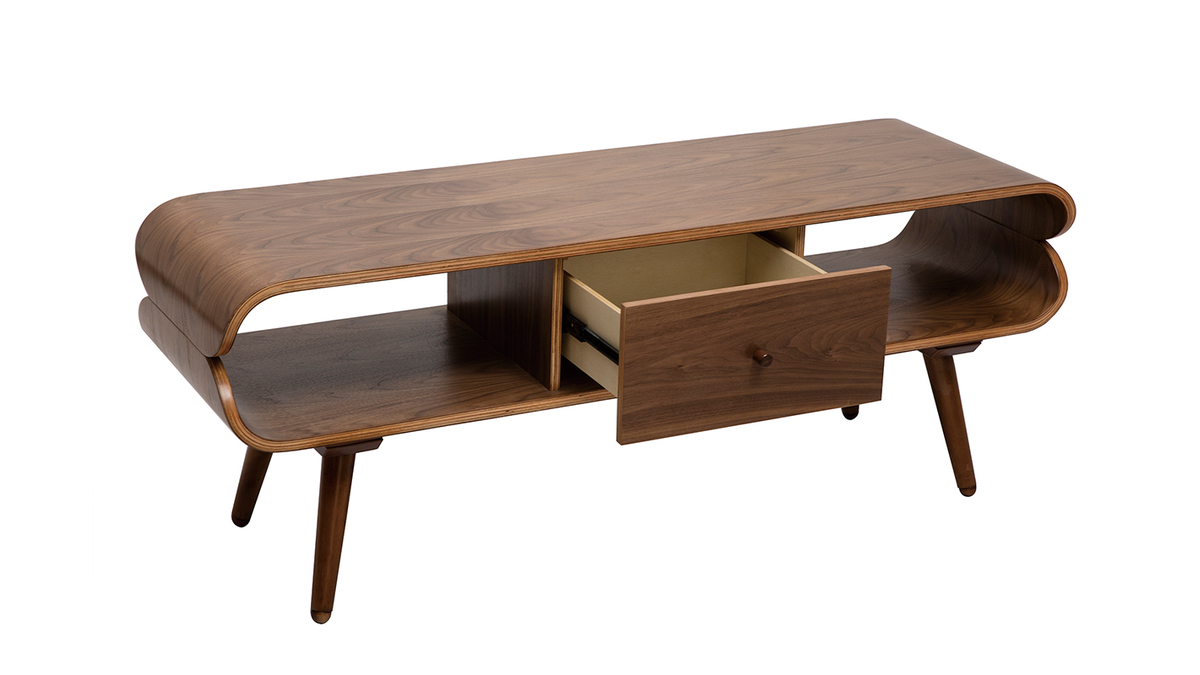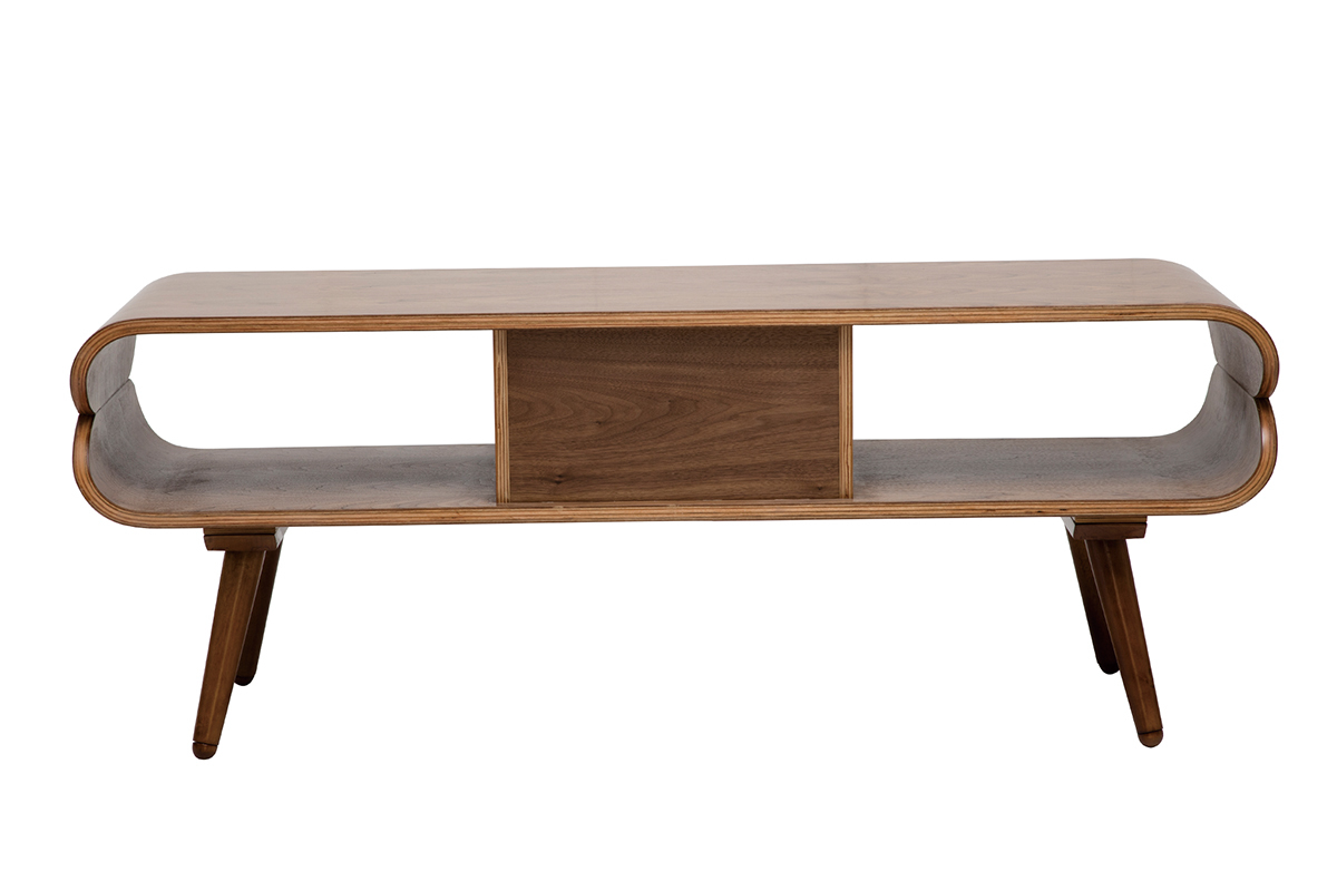 Avec sa jolie finition noyer, ce meuble TV est une pièce chaleureuse qui formera un beau duo avec un canapé vintage.