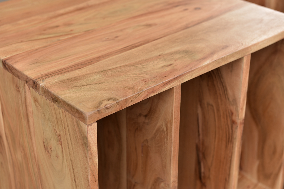 Afin d'éviter d'altérer la couleur naturelle de votre meuble en acacia, il est conseillé de ne pas l'exposer directement au soleil ou à une forte source de chaleur.