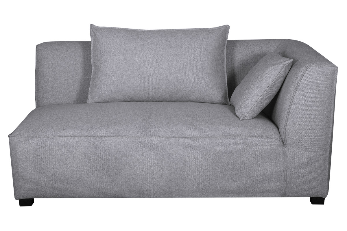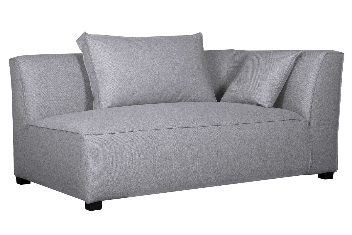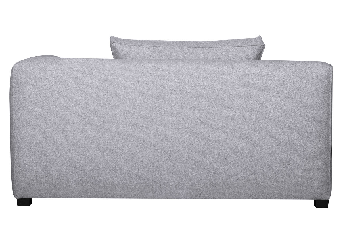 Ce module d'angle design se pare d'un beau tissu gris clair. Avec son look intemporel, on imagine parfaitement ses volumes douillets et lignes épurées dans une pièce de vie à la déco contemporaine.